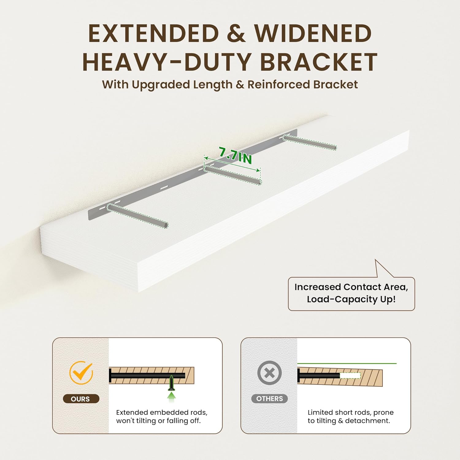- DEEPER & THICKER SHELF- Our floating shelves measure 48W x 11.6D x 2H, deeper and thicker than usual wall shelves, which create more storage and display space for your home