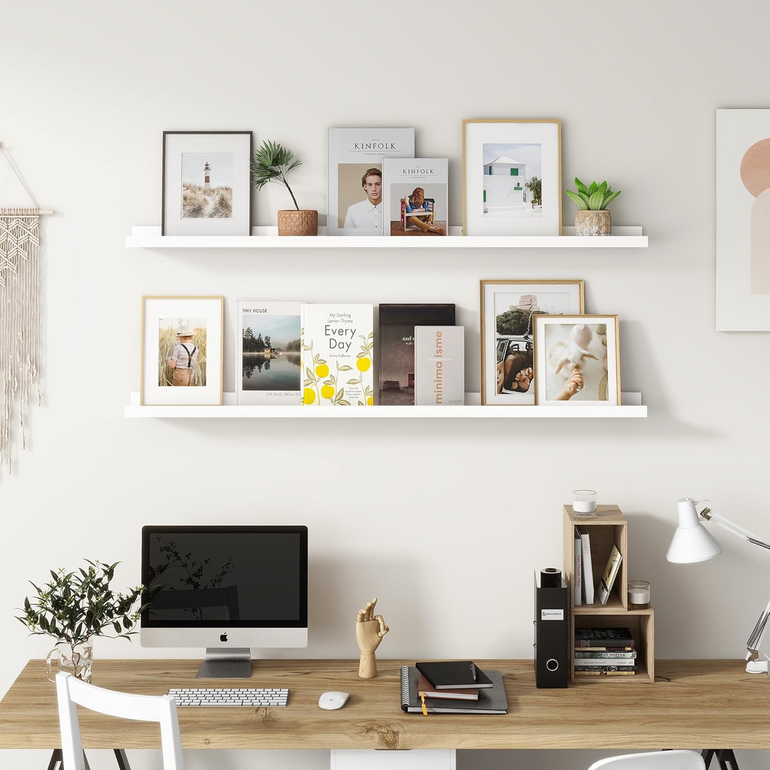 - Easy to Install: You will get a level, screws for the wall, drywall anchors, a detailed installation guide, and two beautiful hand-crafted solid pine wood shelves. With the level, you can make sure your picture ledge shelves are well aligned. Just follow the simple instruction to install the hanging shelves for wall decor within 10 minutes. We add additional screw and anchor to the hardware bag just in case. If you have any questions about our products, please feel free to contact us