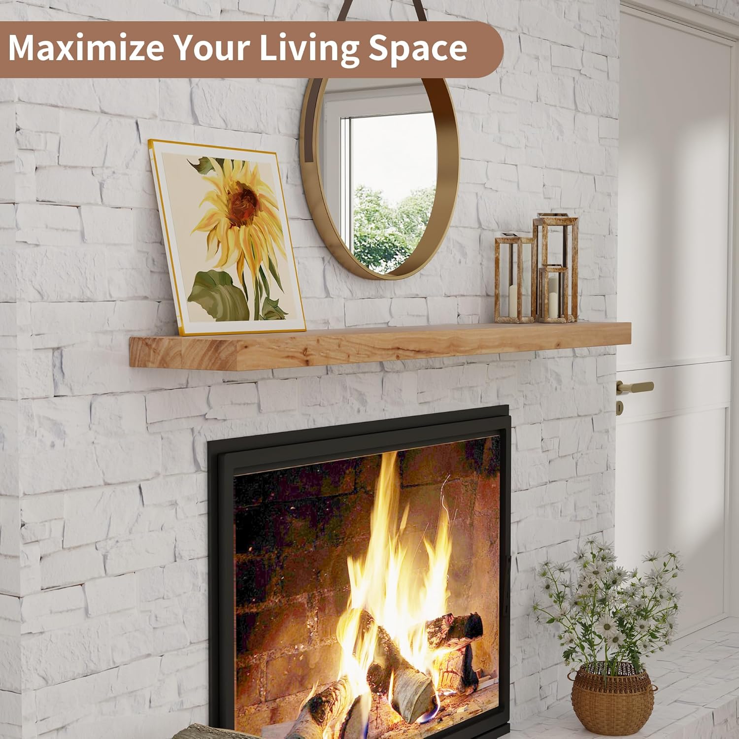 Axeman Floating Shelves for Wall, Rustic Elm Wood 56''W x 8" D Wall Shelf with Invisible Bracket, Large Long Wall Mounted Storage Shelves for Living Room, Bedroom, Kitchen, Bathroom Decor, Natural