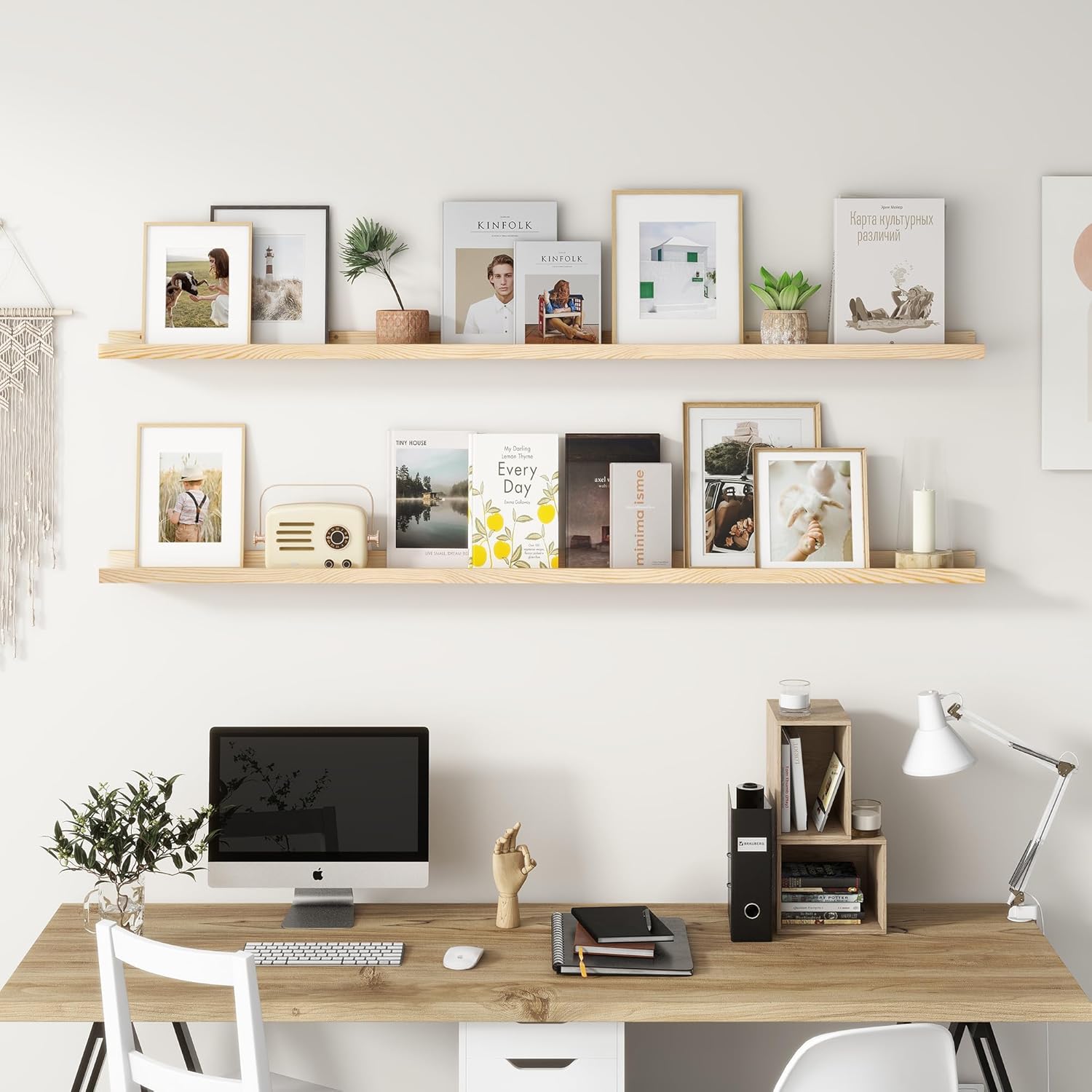Picture Ledge Shelf, Floating Shelves Set of 2, Solid Pine Wood 72'' Long Large Nursery Book Shelves for Toys Storage, Kids Bookshelf for Living Room Bedroom Decor Books Photo Frames, Natural