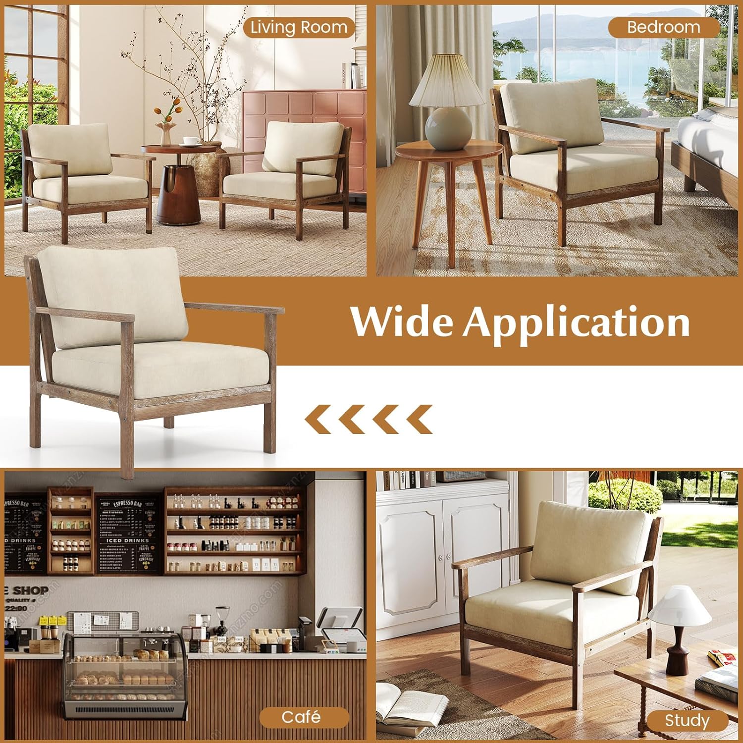 Giantex Mid Century Modern Accent Chair Set of 2, Wooden Arm Chair w/Solid Wood Frame, Removable Seat Cushion & Pillow, Vintage Comfy Reading Chair for Living Room, Bedroom, Study