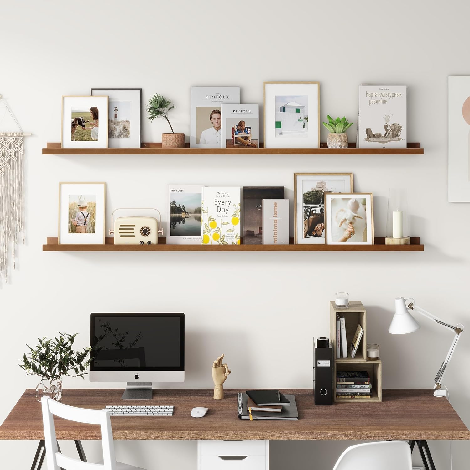 - Easy to Install: You will get a level, screws for the wall, drywall anchors, a detailed installation guide, and two beautiful hand-crafted solid pine wood shelves. With the level, you can make sure your picture ledge shelves are well aligned. Just follow the simple instruction to install the hanging shelves for wall decor within 10 minutes. We add additional screw and anchor to the hardware bag just in case. If you have any questions about our products, please feel free to contact us