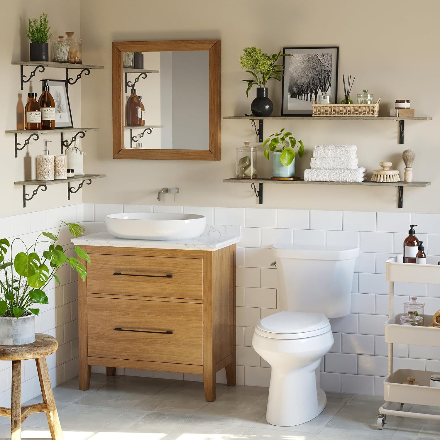 - ใWell MadeใMade of premium particleboard and expertly designed metal brackets, sturdy and durable. Thicker brackets bring added stability and stronger load-bearing capacity(up to 33lbs), supporting the wood shelves without sagging over time. All edges are well-finished for smoothness