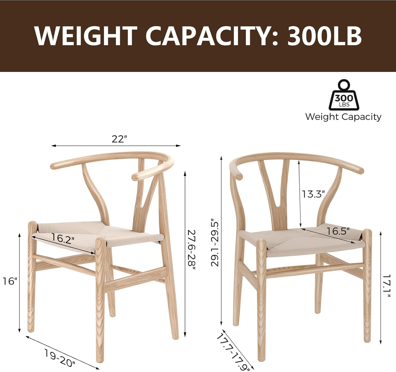 - 【Solid Wood Sturdy & Durable】 VODUR wishbone chair are made of solid and durable American ash wood. Each piece of wood is carefully selected by hand and assembled manually. We have tested that each chair can load at least 300 pounds