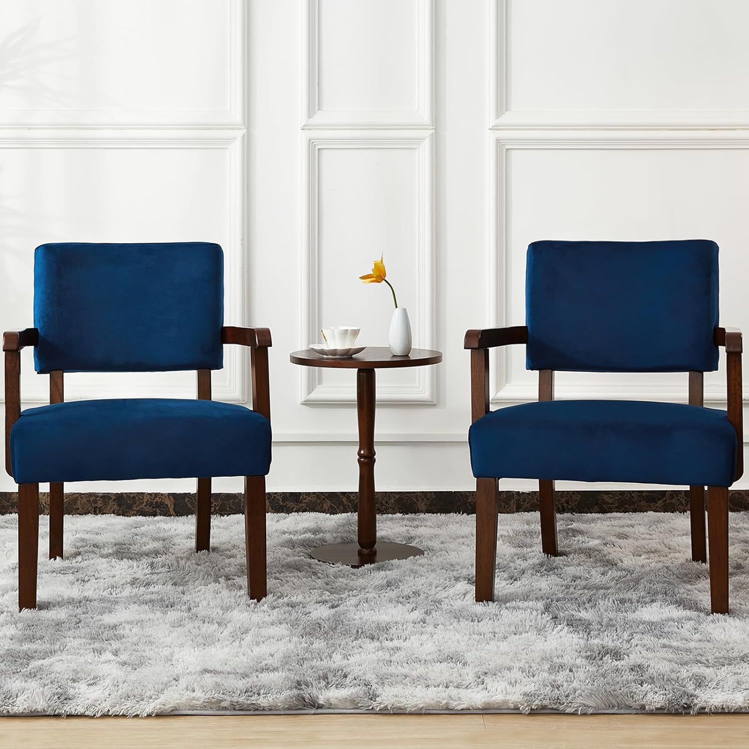 Accent Chair Set of 2 with Table, Living Room Chairs with Velvet Soft Seat & Armrests for Living Room Bedroom Reading Room Waiting Room (Velvet Navy)