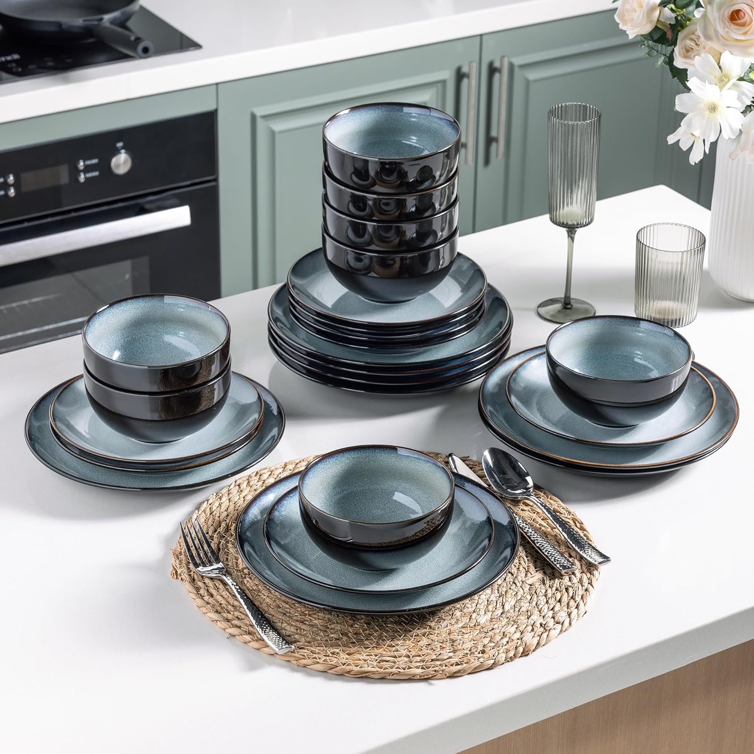 - γSERVICE FOR 6 γ6 pcs of 10.5" dinner plates, 6 pcs of 8.5" salad/appetizer/dessert plates, and 6 pcs of 26 oz soup/cereal/ceramic bowls. It makes a great housewarming gift for newlyweds who appreciate quality and style, or for anyone who has recently moved into a new home or apartment. With this set, you can enjoy your meals in style and create beautiful memories with your loved ones.