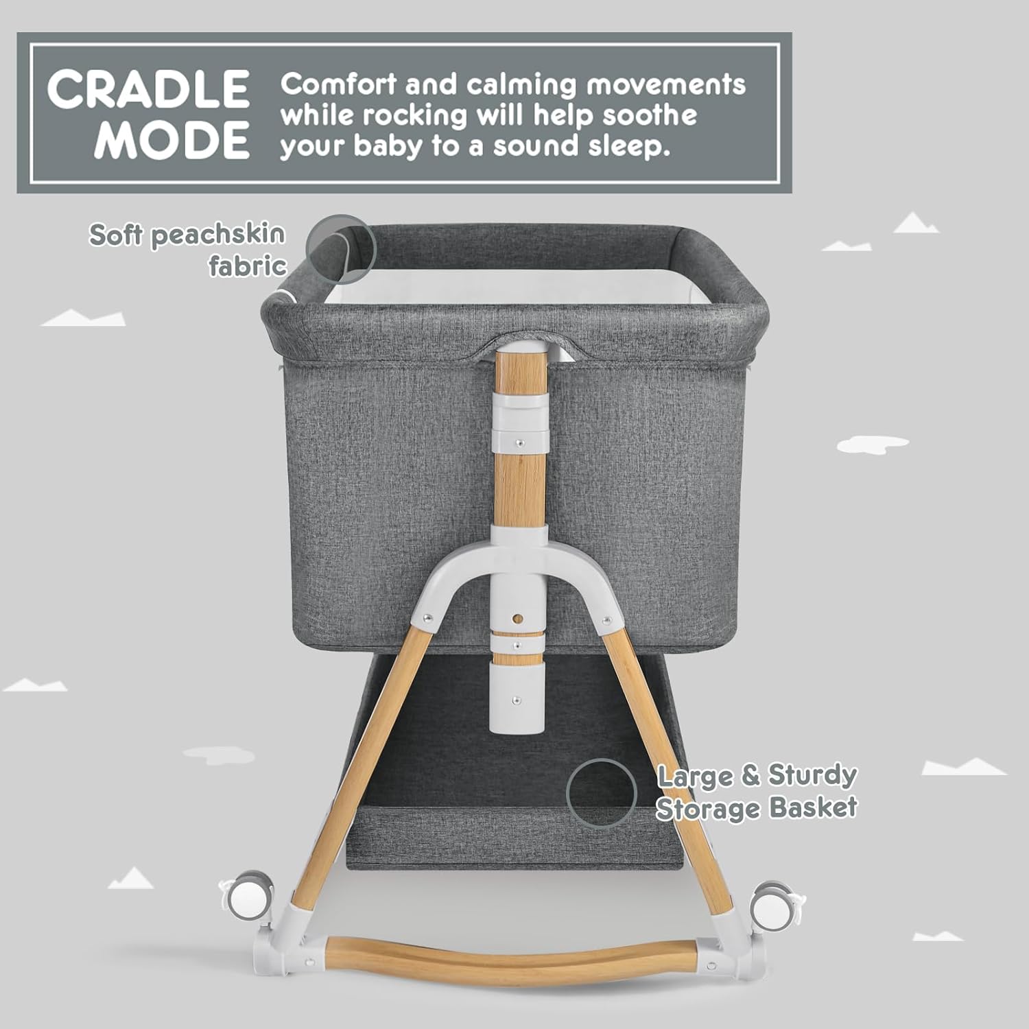 - 3 in 1 Convertible Bassinet: HARPPA bassinet can be used as a bedside bassinetγrocking bassinet or standalone baby bassinet. Mimicking gentle parental rocking to create a tranquil sleeping environment for the baby