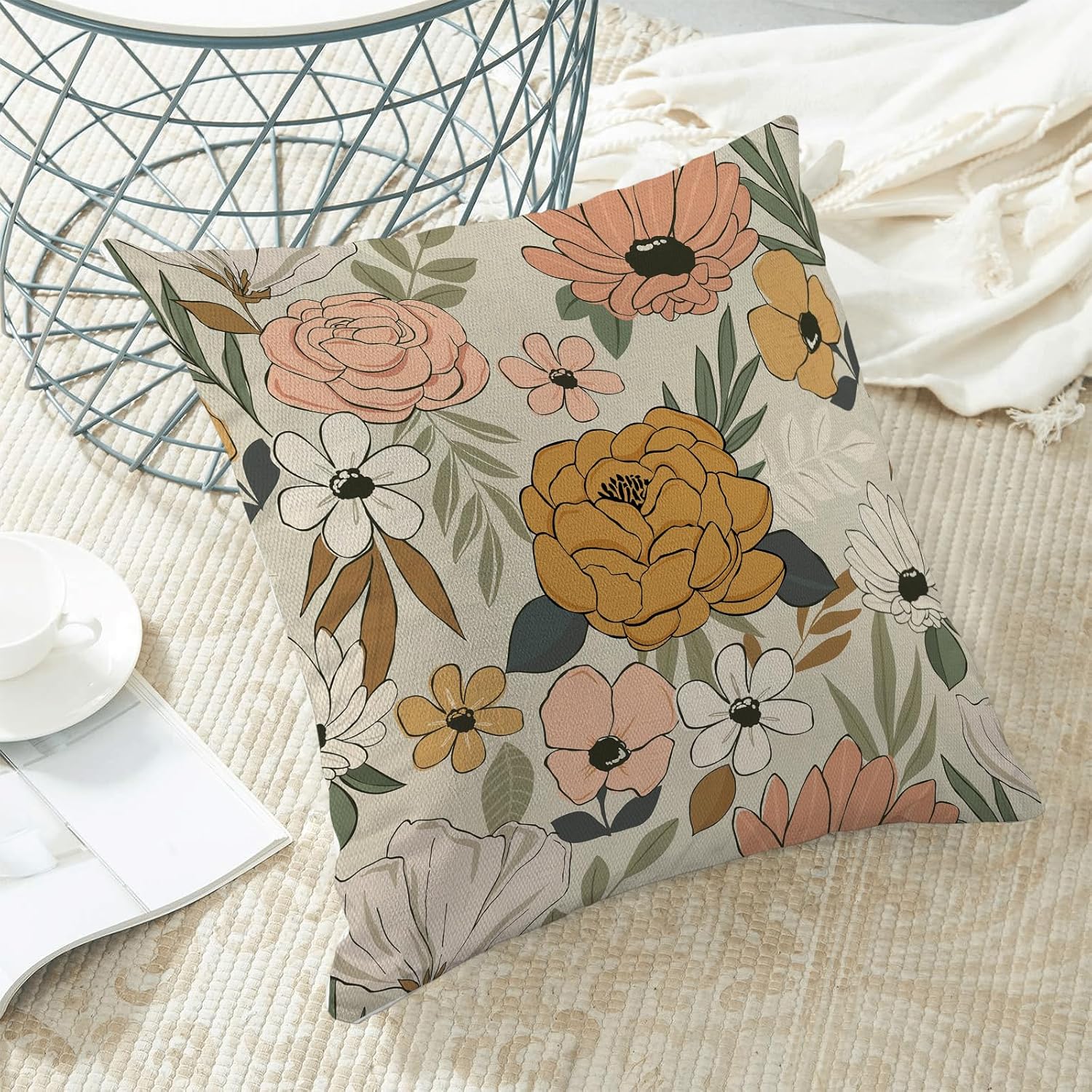 - 【Spring Pillow Covers】 Our floral throw pillow covers 16x16 inch are made of excellent breathable polyester linen fabric. The cream decorative pillow covers is durable, soft and skin-friendly. The plant outdoor pillow covers adopt exquisite edging technology and four sides of our floral pillow covers are sewn firmly, which is not easy to open the line.