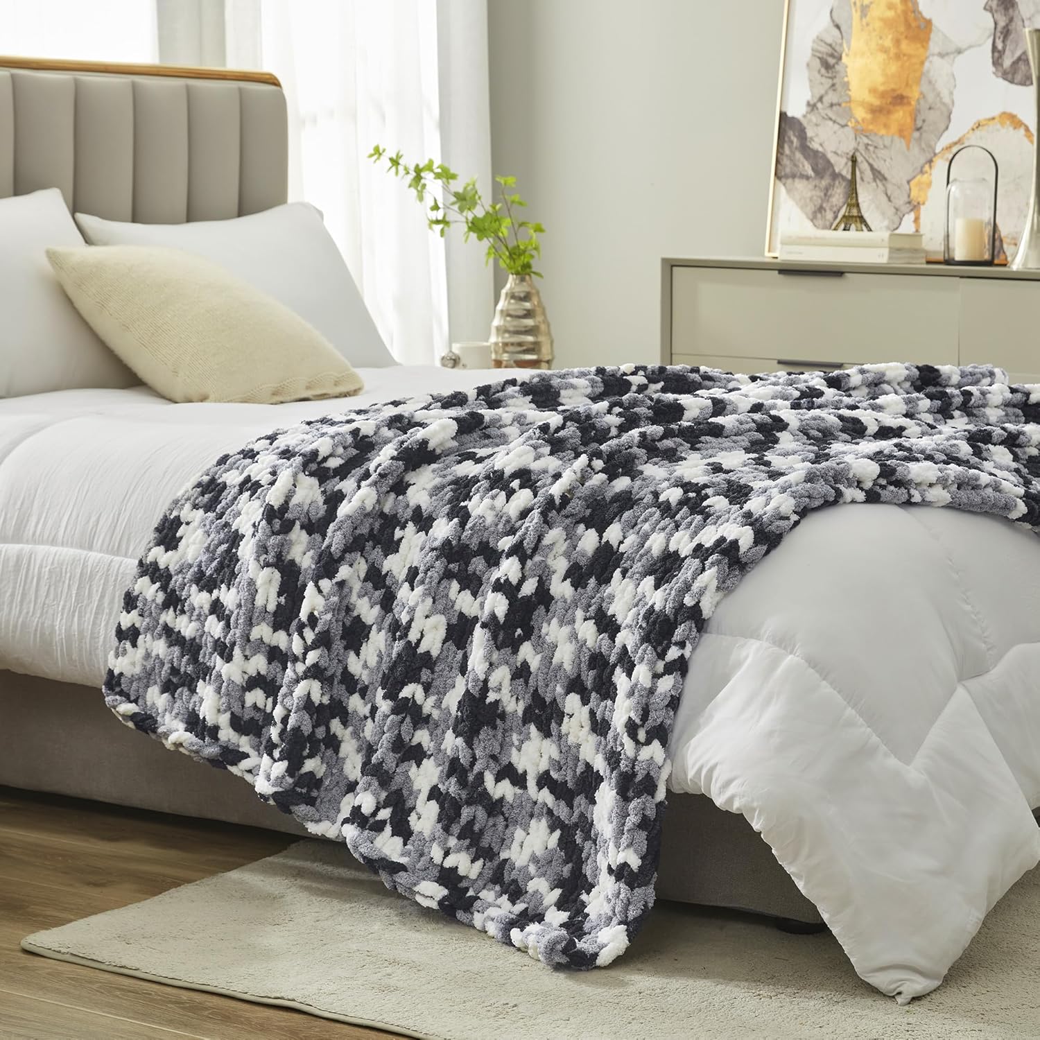 - CHUNKY HAND-KINT TEXTURE: This chenille throw blanket mimics the look of handmade chunky knit blankets with its oversized rope-like yarns . Each deep stitch creates a tactile, lofted texture that elevates sofas, beds, or nursery chairs instantly.