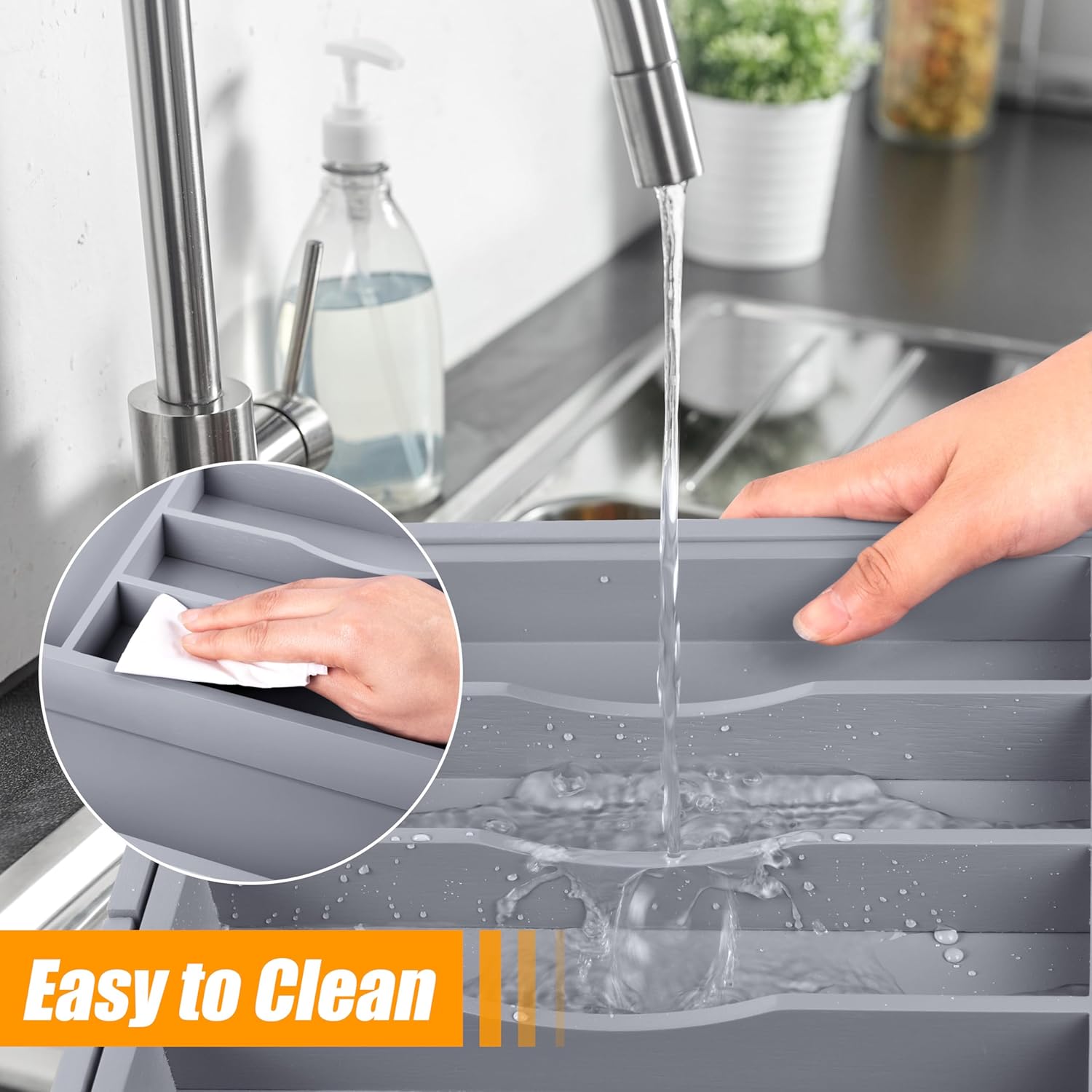 - β γHelper - Keep Your Home TidyγSay goodbye to cluttered junk drawers and the hassle of searching for kitchen utensils. No more digging through drawers filled with silverware and miscellaneous items. Our utensil silverware drawer organizer can help you stay organized, providing a designated spot for each item, ensuring everything is in its place and easily accessible. Different-sized compartments accommodate standard utensils and larger dinnerware. And maintain an overall tidy and clean appearance.
