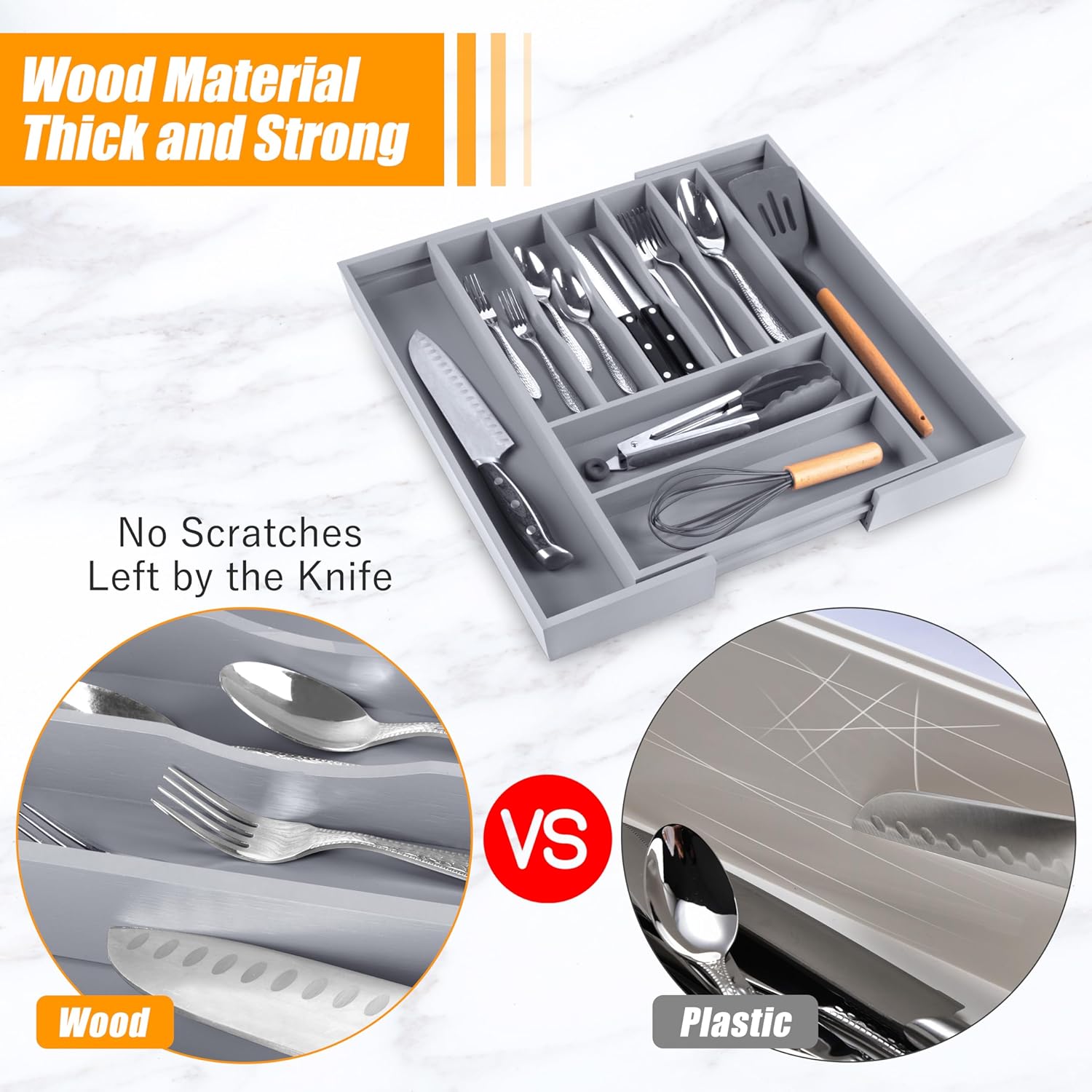 - β γQuality - Deep Compartments & Reinforced BaseγOur utensil drawer organizer features compartments with a depth of 1.9 inches, helping maximize drawer space and perfect for storing more essential tools and gadgets. The utensil silverware drawer organizer comes with a reinforced base, ensuring durability for long-term use, and is ideal for supporting the weight of heavy-duty utensils and knives. Keep everything you need conveniently at hand while cooking, neatly visible, and easy to grasp when preparing the next meal in the kitchen.