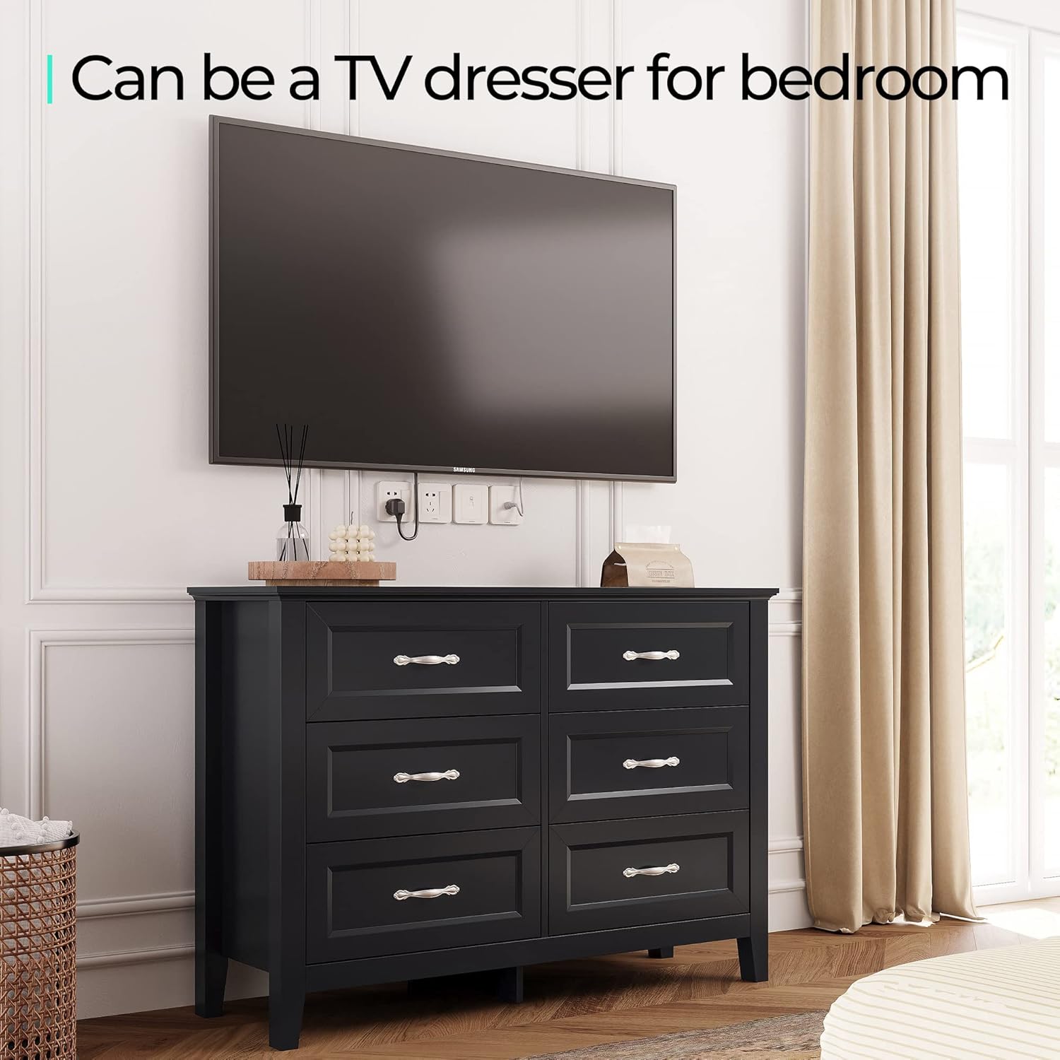 - [MULTIFUNCTIONAL STORAGE MASTER] This accent dresser features 6 spacious drawers for clothes, books, and other items, offering both practicality and visual appeal. this classic farmhouse dresser can be placed in various spacesβguest room for essentials, entryway for keys and leash, or even as a living room TV stand, showcasing both style and functionality.