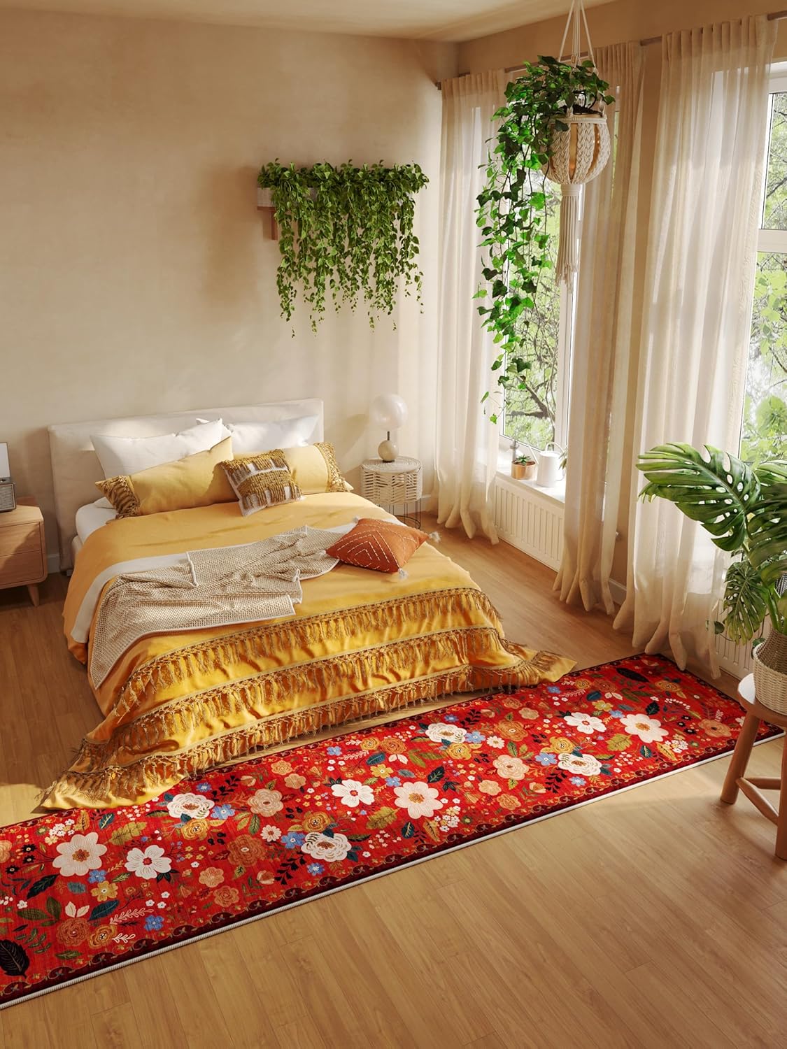 Runners for Hallways Kitchen Runner Rug Non Slip 2'x 10' Long Washable Rugs with Rubber Backing Soft Floral Carpet Runner for Hallways, Kitchen, Laundry, Bedroom, Bathroom(Red)