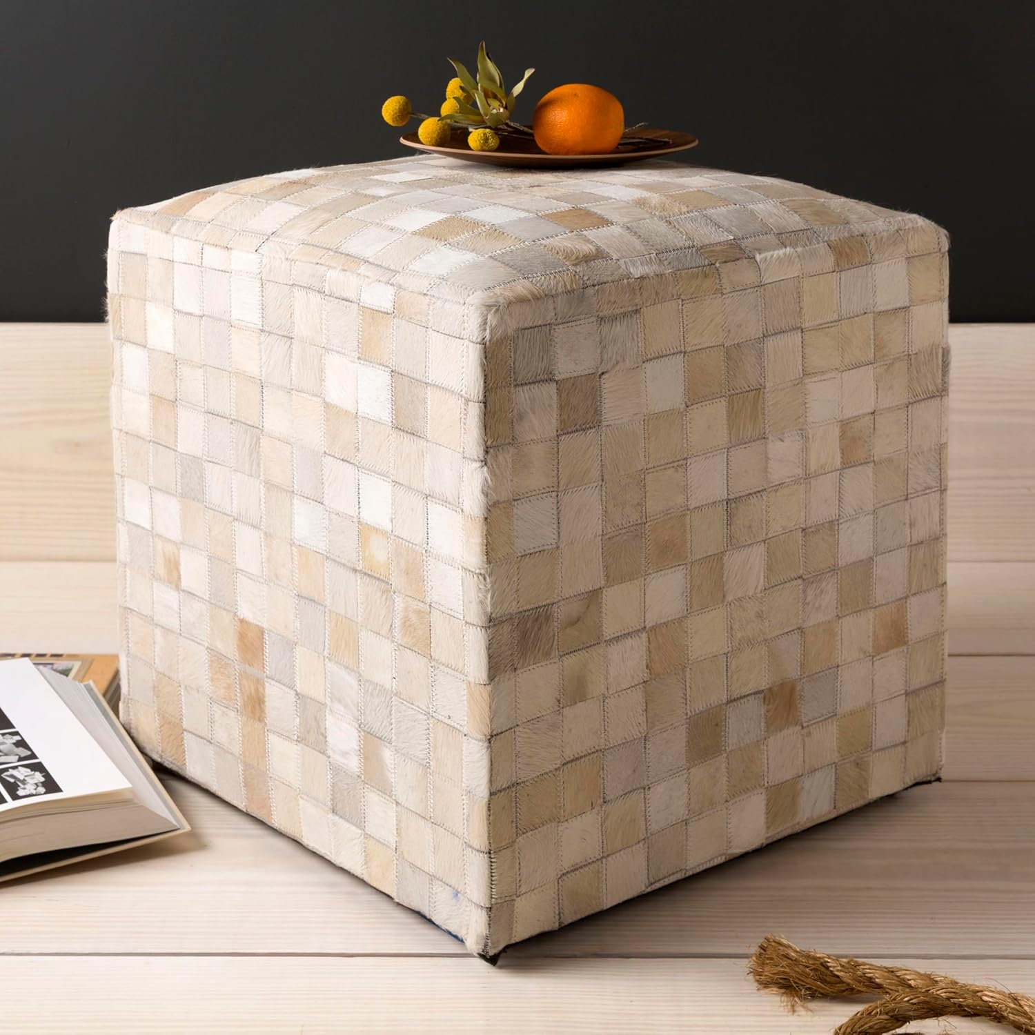 Mark&Day Pouf Ottoman, Grobschonau Hide Leather and Fur Camel Cube Pouf Foot Rest for Living Room, Bedroom and Boho Home Decor (18"x18"x18")
