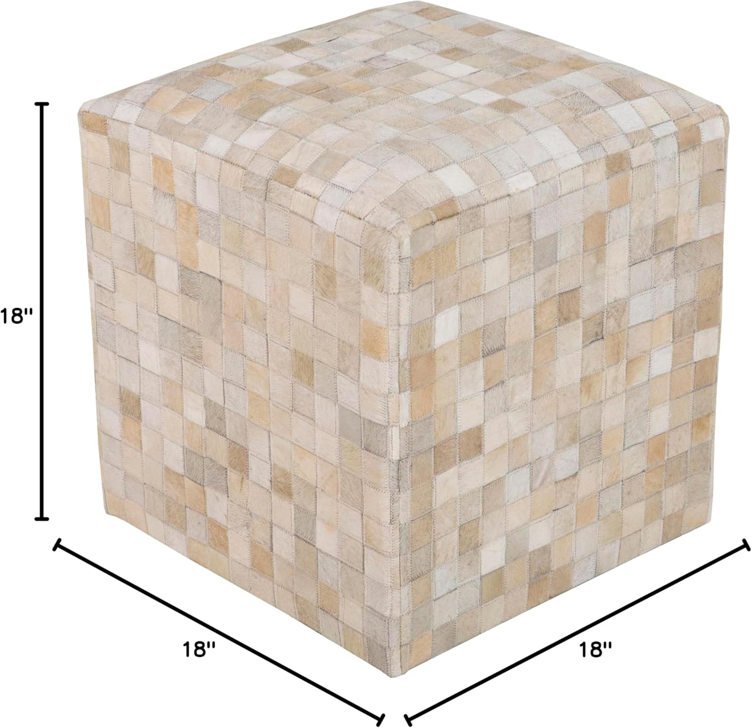 - ใPRODUCT SPECIFICATIONSใColors: Cream, Camel | Dimensions: 18"H x 18"W x 18"D | Style: Hide Leather and Fur | Shape: Cube | Construction: Leather