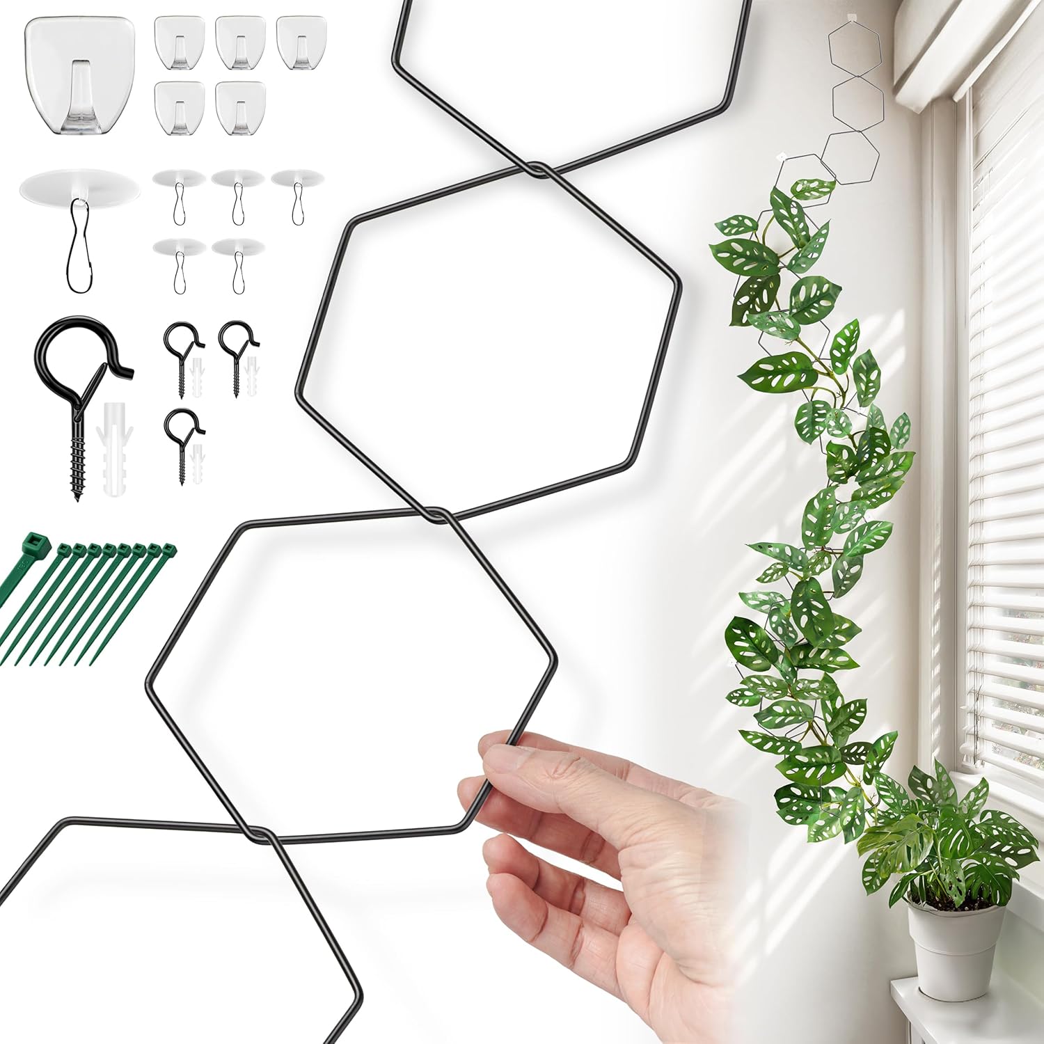 - DIY Climbing Path: Our product features a set of 18 hexagonal rings, carefully designed to create a sturdy and attractive climbing path for upward-growing plants.