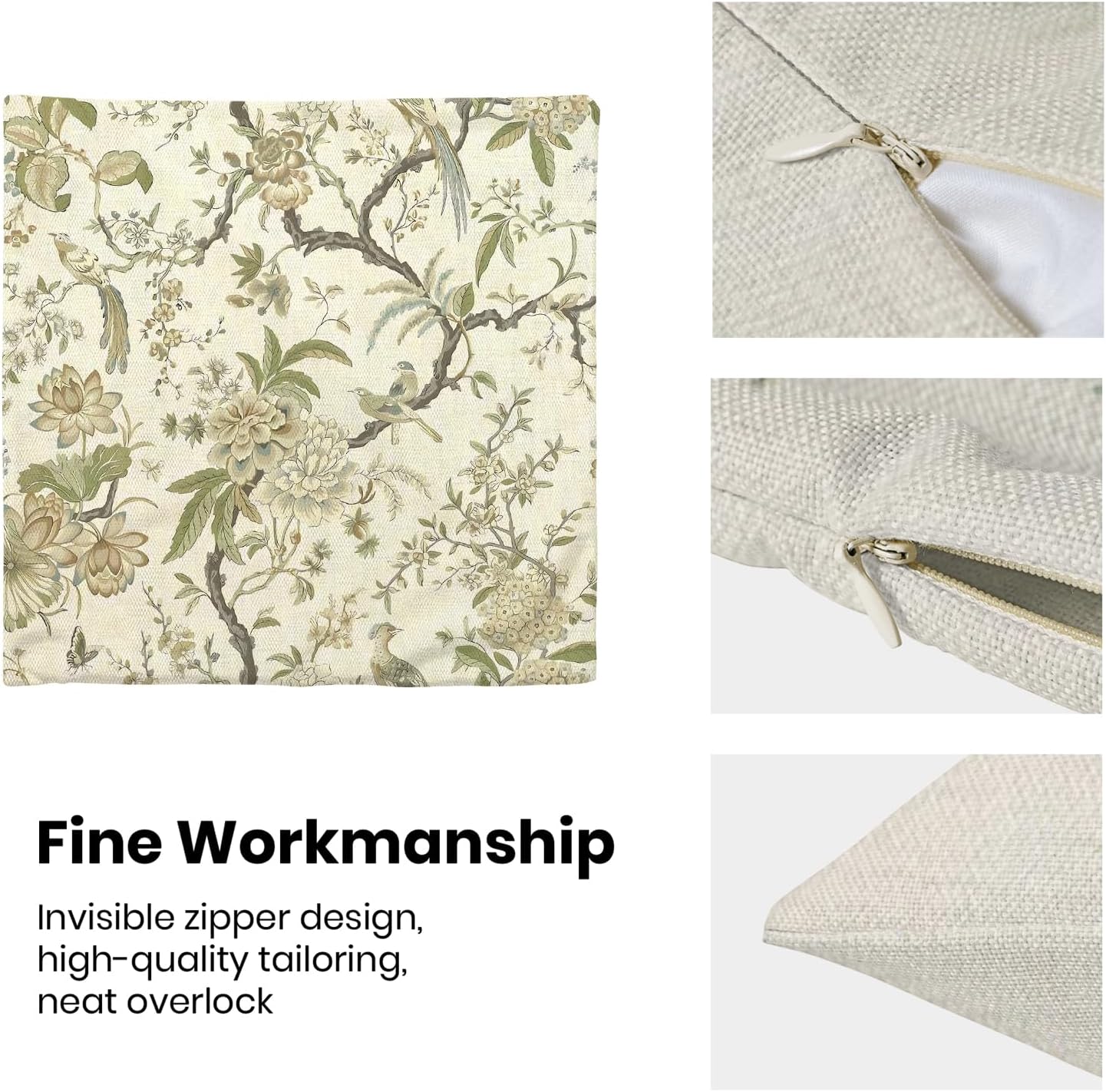 - 【Spring Pillow Covers】 Our Chinoiserie floral throw pillow covers 18x18 inch are made of excellent breathable polyester cotton fabric. The sage green floral decorative pillow covers is durable, soft and skin-friendly. The plant outdoor pillow covers adopt exquisite edging technology and four sides of our floral pillow covers are sewn firmly, which is not easy to open the line.