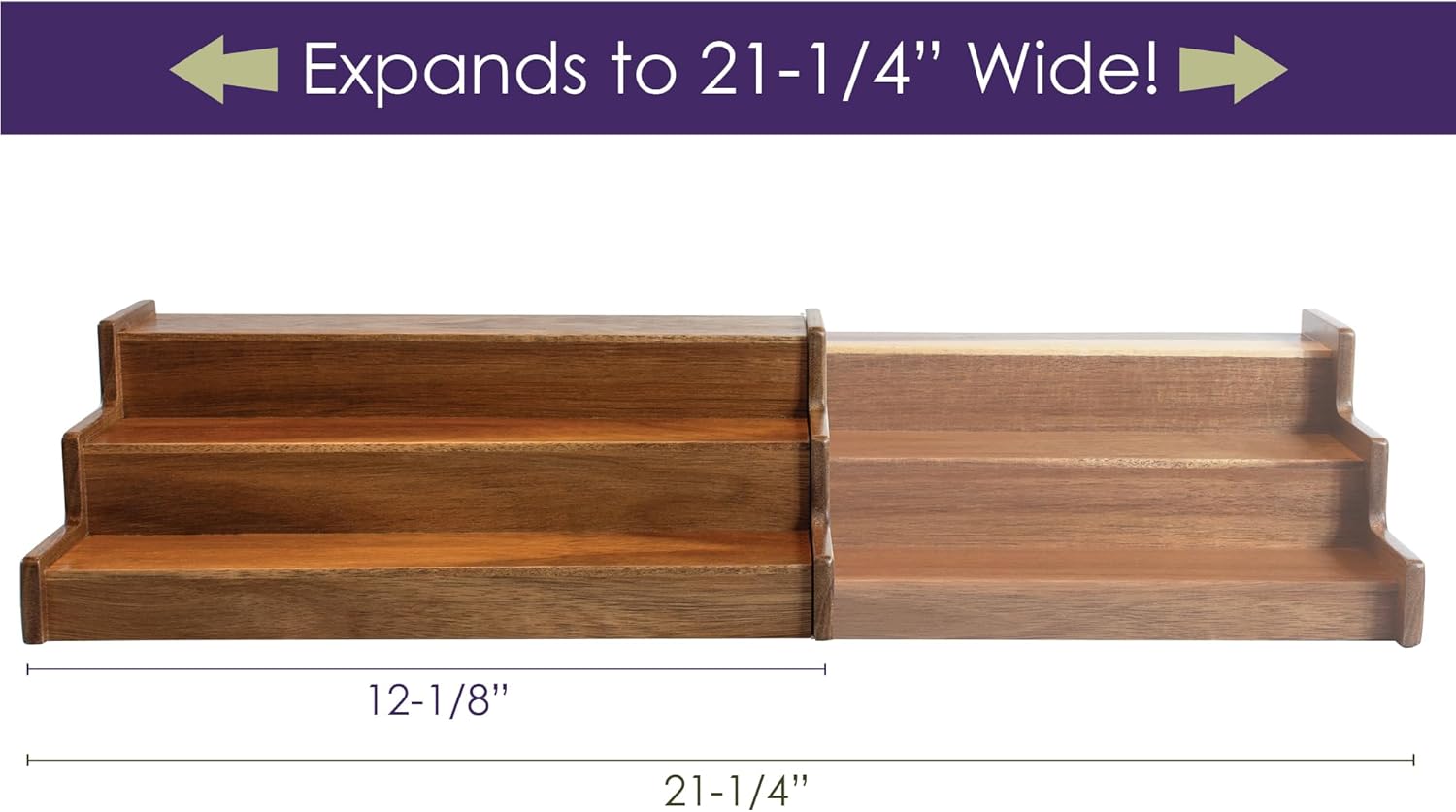 - Adjustable to Your Kitchen: Spice rack expands from 12-1/8 inches to up to 21-1/4 inches to fit your kitchen cabinet or countertop space perfectly; slides easily to adjust to the needed width