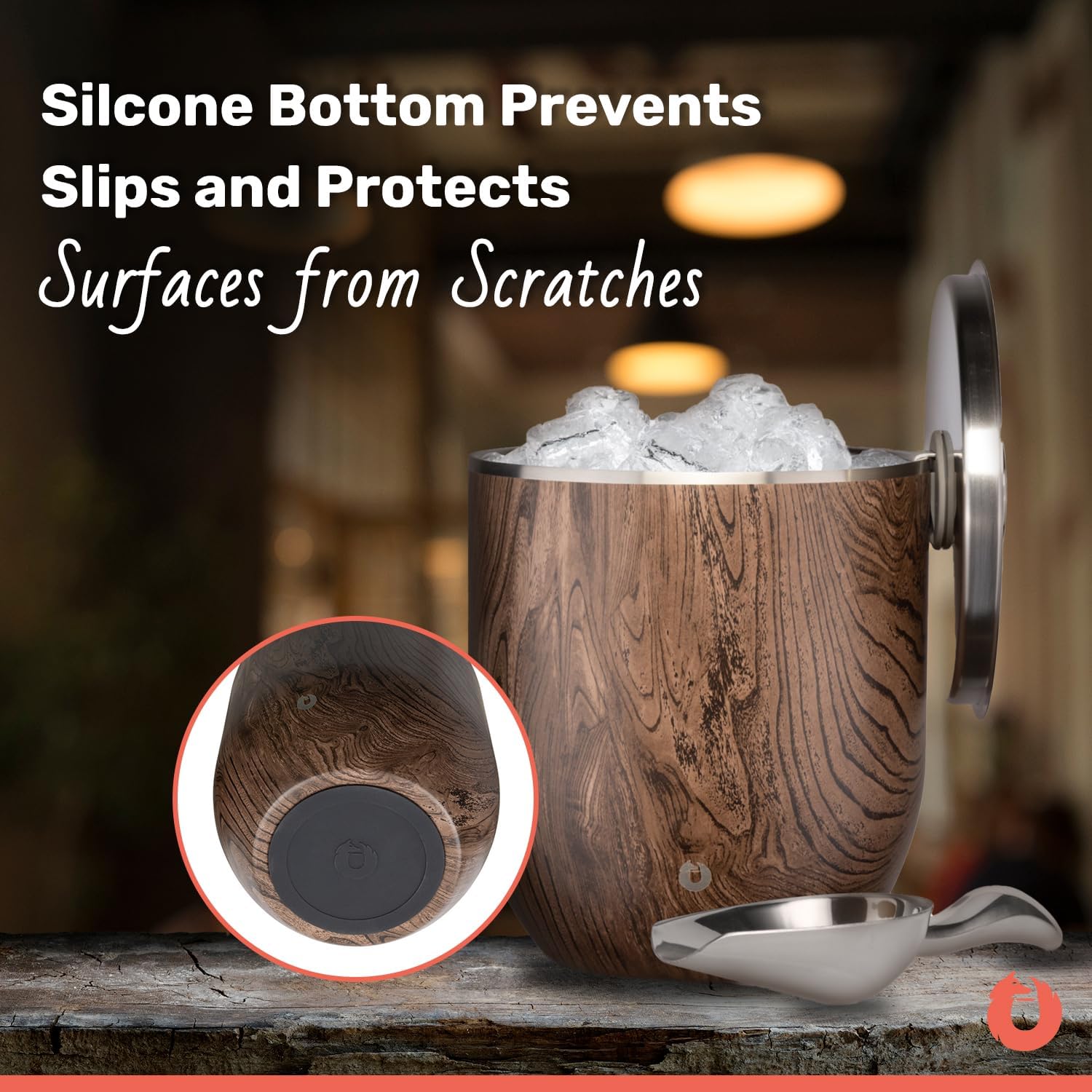 - Timeless Style: The last ice bucket you’ll ever need, and frankly, ever want. Our beautiful 3-liter bucket uses insulated stainless steel so your ice and drinks stay refreshingly cold. The ‘floating’ lid with side holder, includes metal ice scoop, and rubber base making it fun to use while mixing your guests’ favorite cocktails. Bring it to the patio or cookout—the outside is condensation-free so it’s easy to carry. A must-have home entertaining bar accessory, and a treasured gift.