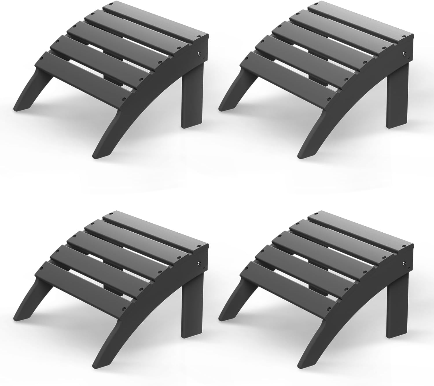 GREENVINES Adirondack-Ottoman | Set of 4 | HDPE Plastic | Outdoor Footrest | All Weather | Foot Rest | Foot Stool | Grey | for Adirondack Chair | for Patio Backyard Pool