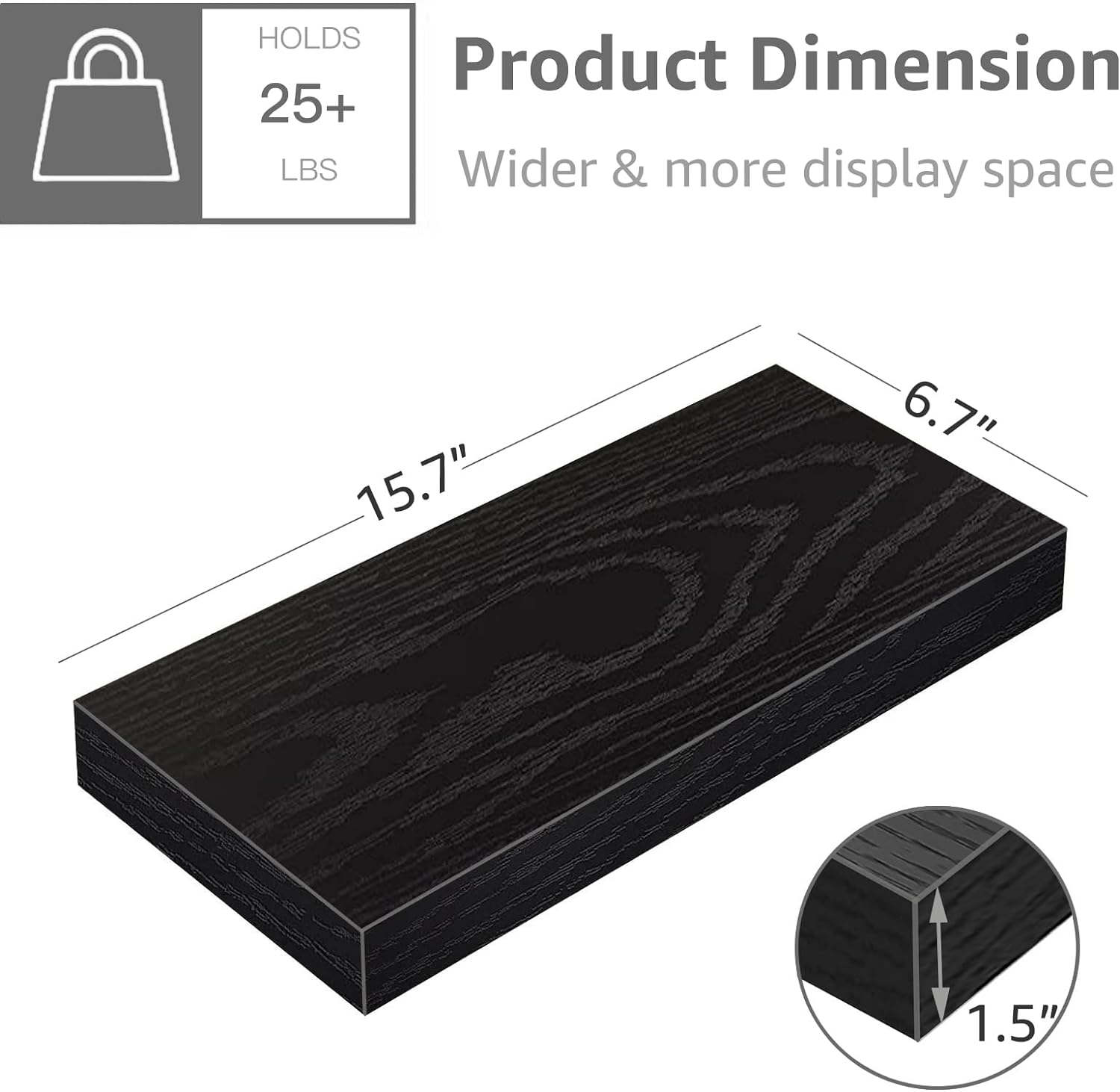 QEEIG Floating Shelves for Wall Bathroom Shelf Bedroom Kitchen Living Room Farmhouse Small Book Shelf 16 inch Set of 2, Black (015-B2)