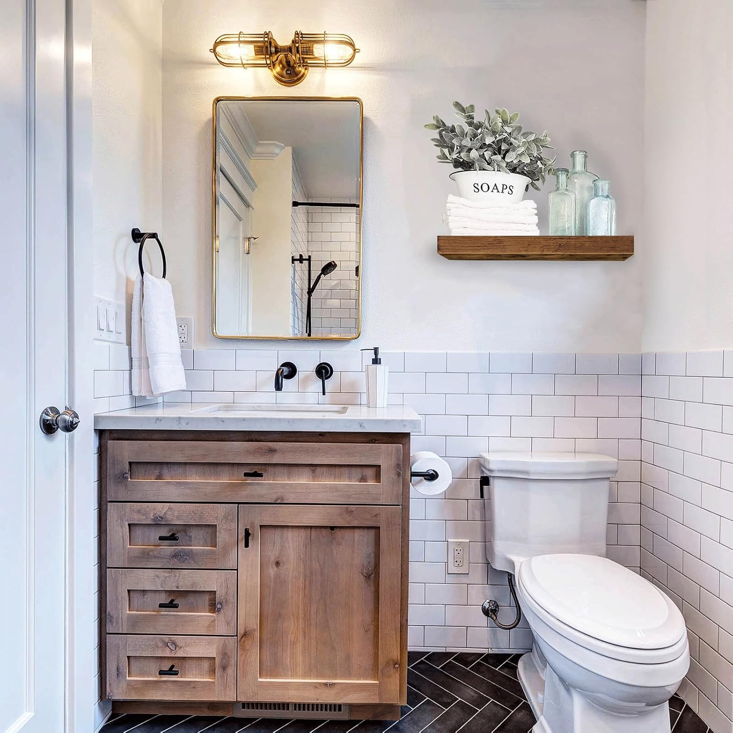 - Invisible Bracket: Farmhouse vibe fill in empty wall space above a desk, fireplace, entryway, vanity, between windows. Put succulent plants, collectibles small items
