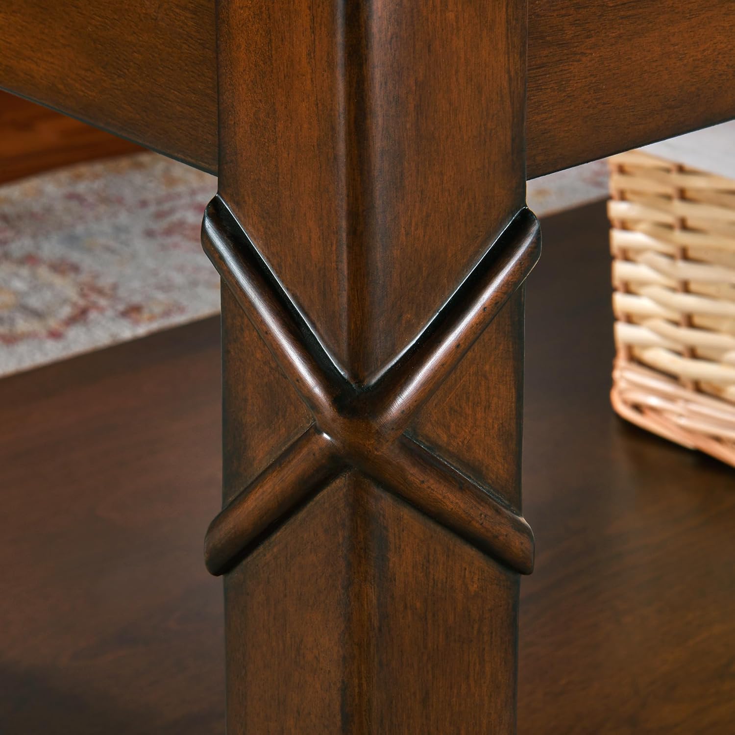 Solid Wood Coffee Table with Storage Shelf, Mid-Century Living Room Tables with Carved Tabletop and Leg, 43.3” Splicing Cocktail Center Sofa Table, Cherry Brown KFZ-DR200