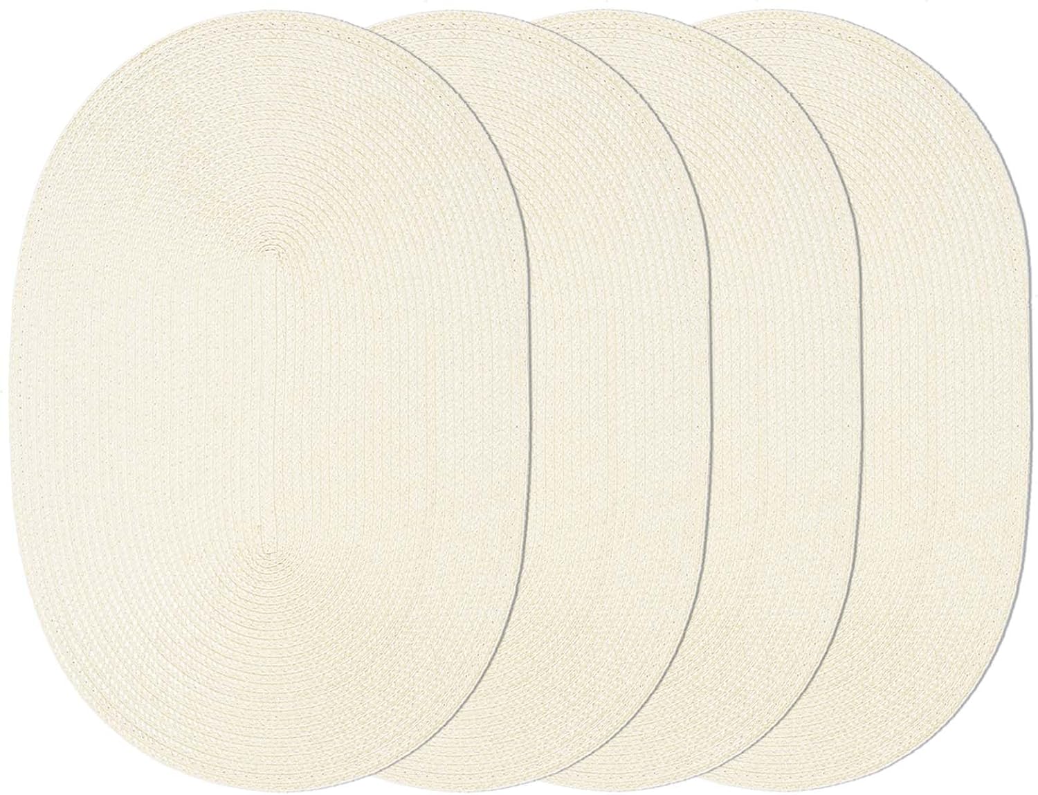 AHHFSMEI Placemats Set of 4 for Dining Table Washable Woven Vinyl Non-Slip 18x12 inches Placemat Heat-Resistant Durable Table Mats for Dining Table Easy to Clean (Oval Beige, 4)