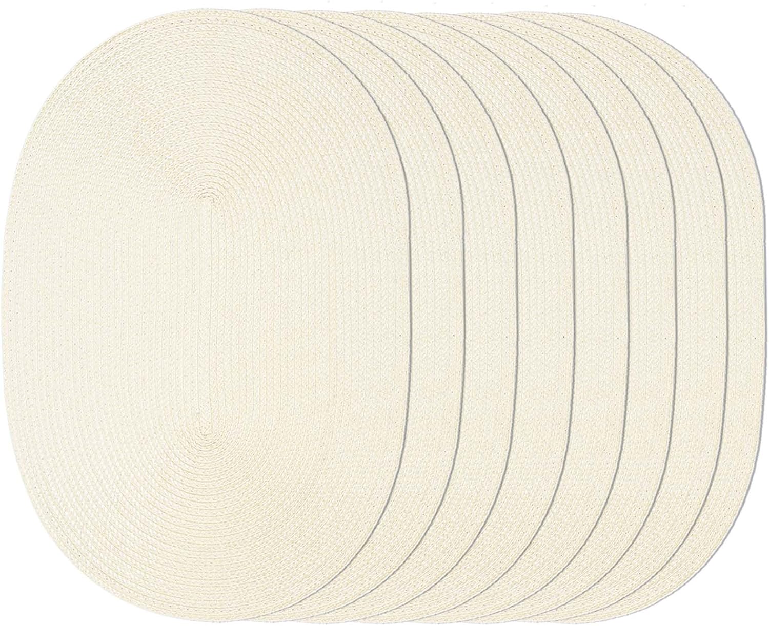 AHHFSMEI Placemats Set of 8 for Dining Table Washable Woven Vinyl Non-Slip 18x12 inches Placemat Heat-Resistant Durable Table Mats for Dining Table Easy to Clean (Oval Beige, 8)