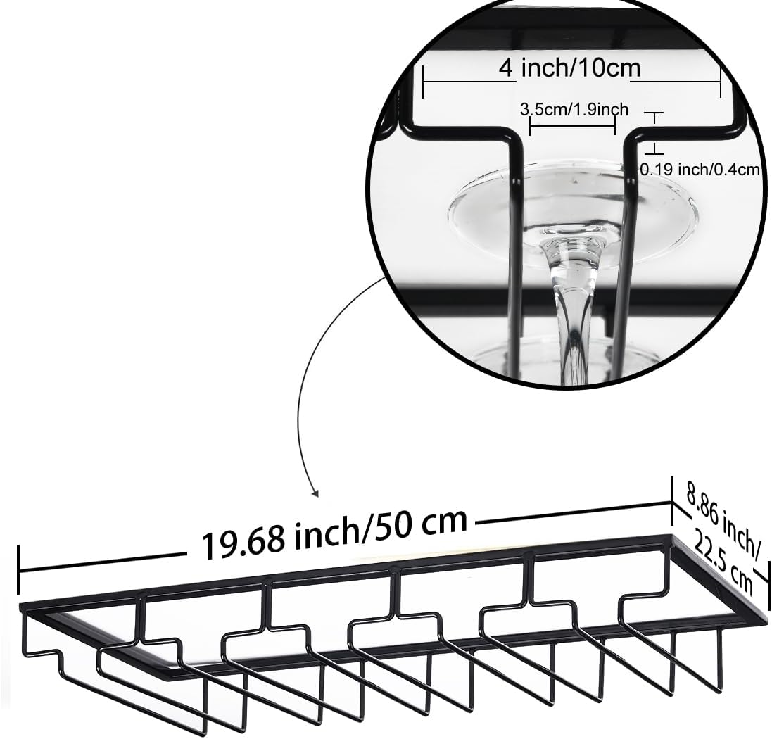 - 🍷EASY TO INSTALL: Comes with the mounting hardware, no advance drilling advance required, just a few minutes to complete the installation. Organize your stemware collection, keep your wine glasses under the cabinet.