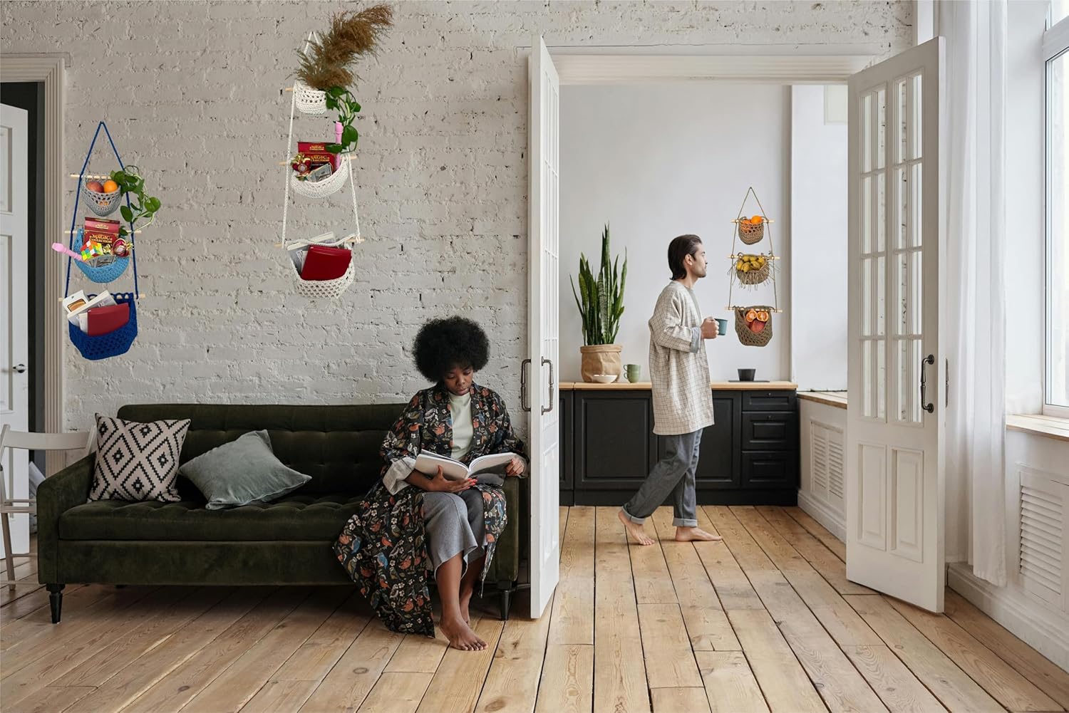 - 【3-IN-1 Large Capacity Design】 These beautiful macrame hanging wall baskets feature three separate tiers, including 3 hanging baskets of different sizes. Separate storage allows you to easily classify your items and keep your living space tidy. With a large storage capacity, 3 tier hanging fruit basket is very suitable for wall hanging to store or organize various items.