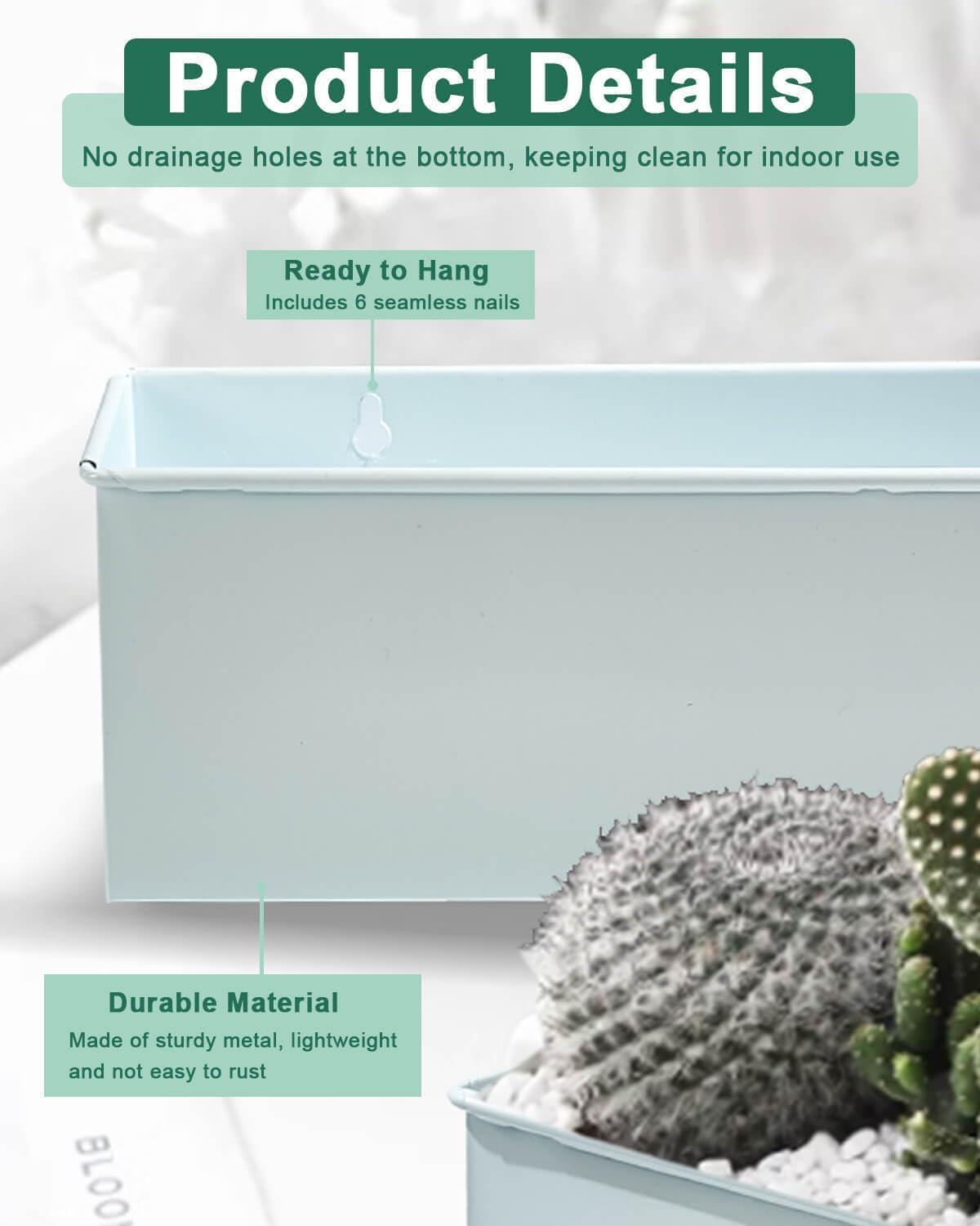 - 【Dual Use – Planter & Storage Box】These metal wall planters are not only great for growing plants, but also versatile as decorative storage boxes for bathroom supplies, kitchen tools, or office items.