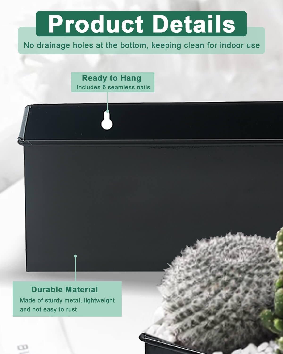 - 【Easy Mounting with Included Nails】Comes with 6 seamless nails for quick wall installation. Suitable for drywall, wooden fences, decks, railings, or mounted under windows for stylish vertical gardening.