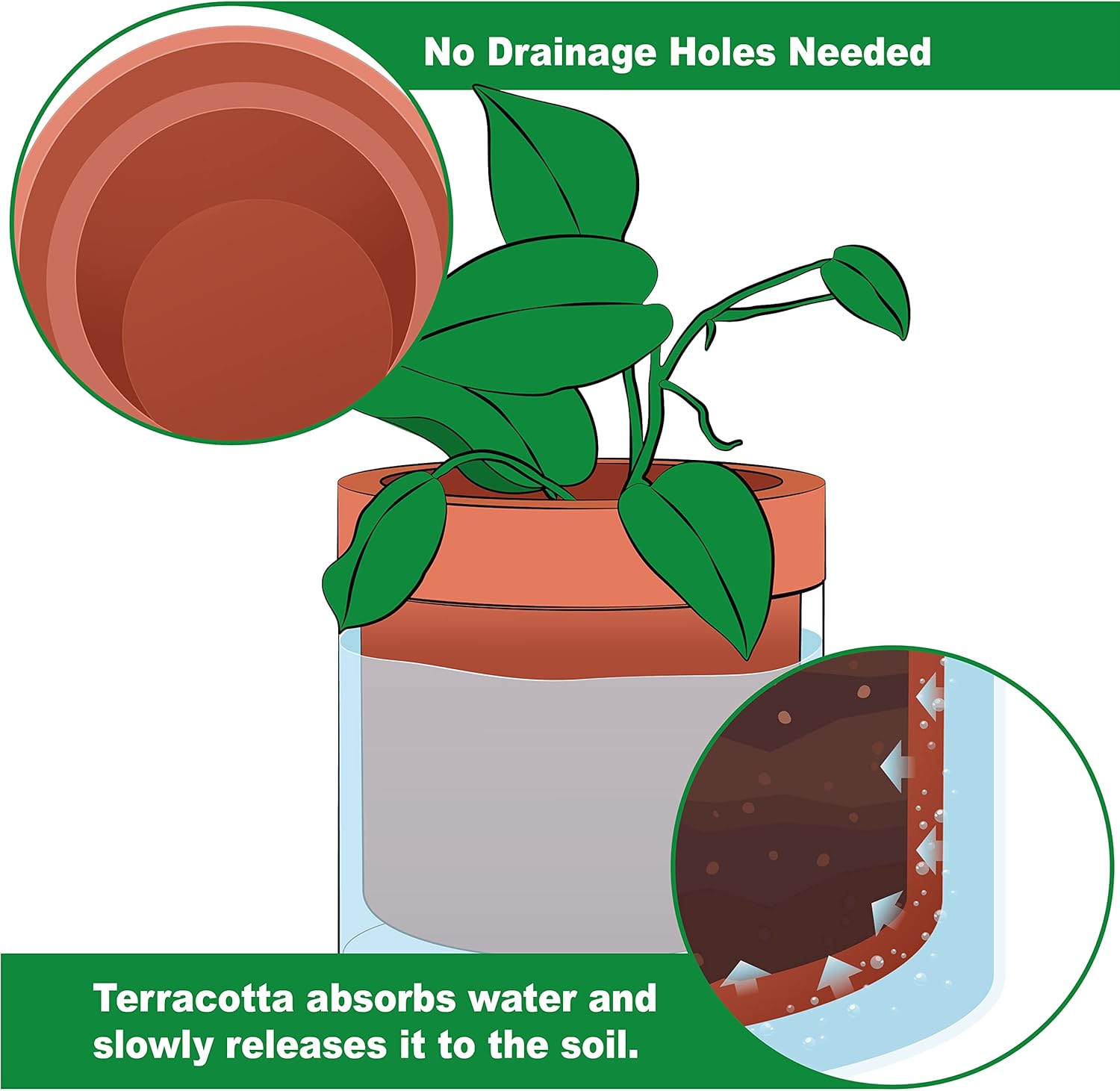 - Self-watering System: The terracotta pot is unglazed, just fill the glass container with water to ensure plants will absorb only what they need through the terracotta pot walls.