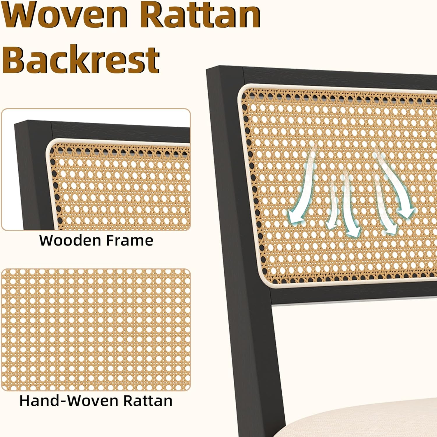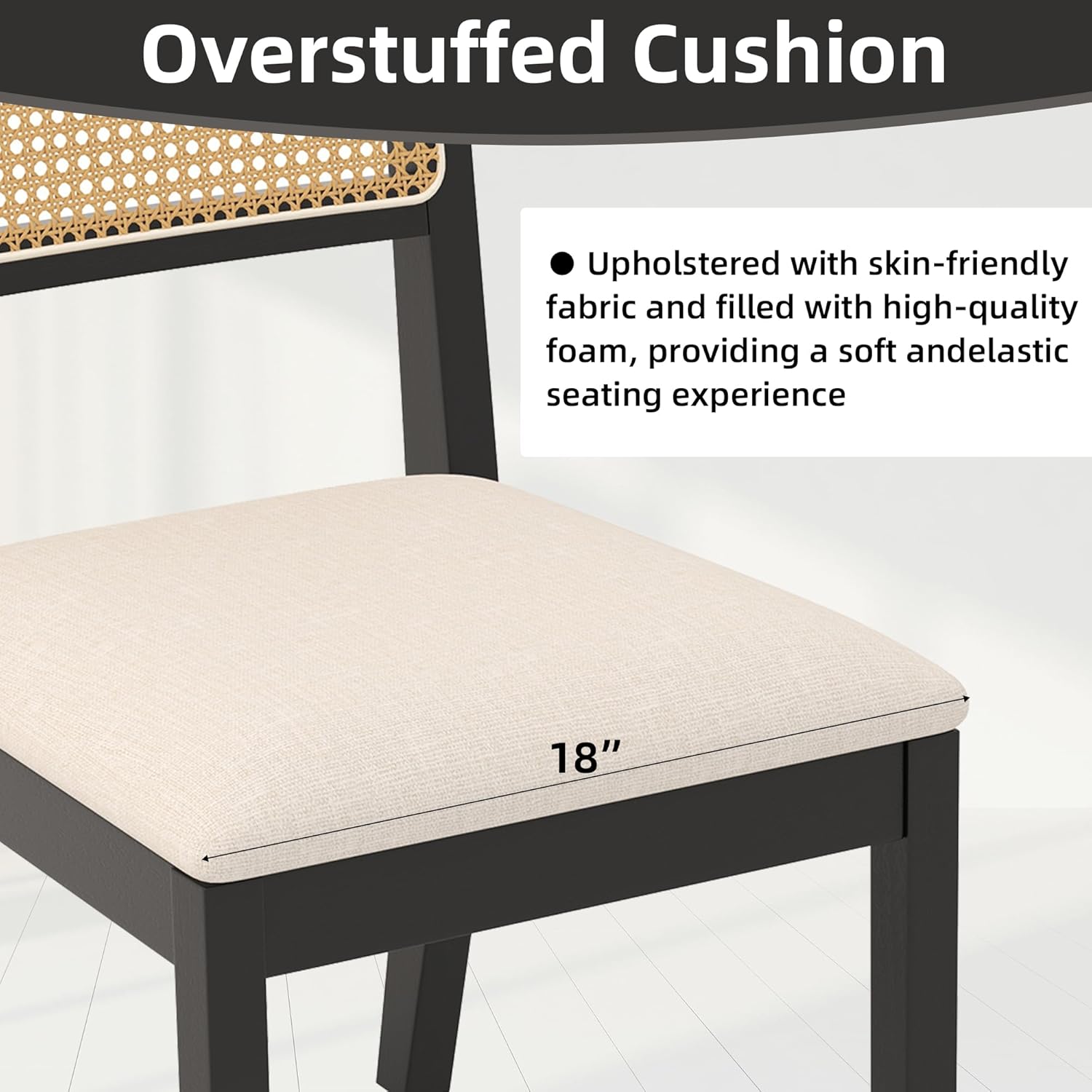 Westice Rattan Dining Chairs Set of 2, Farmhouse Natural Dining Room Chairs with Upholstered Cushion, Wood Armless Chairs for Kitchen/Restaurant, Black