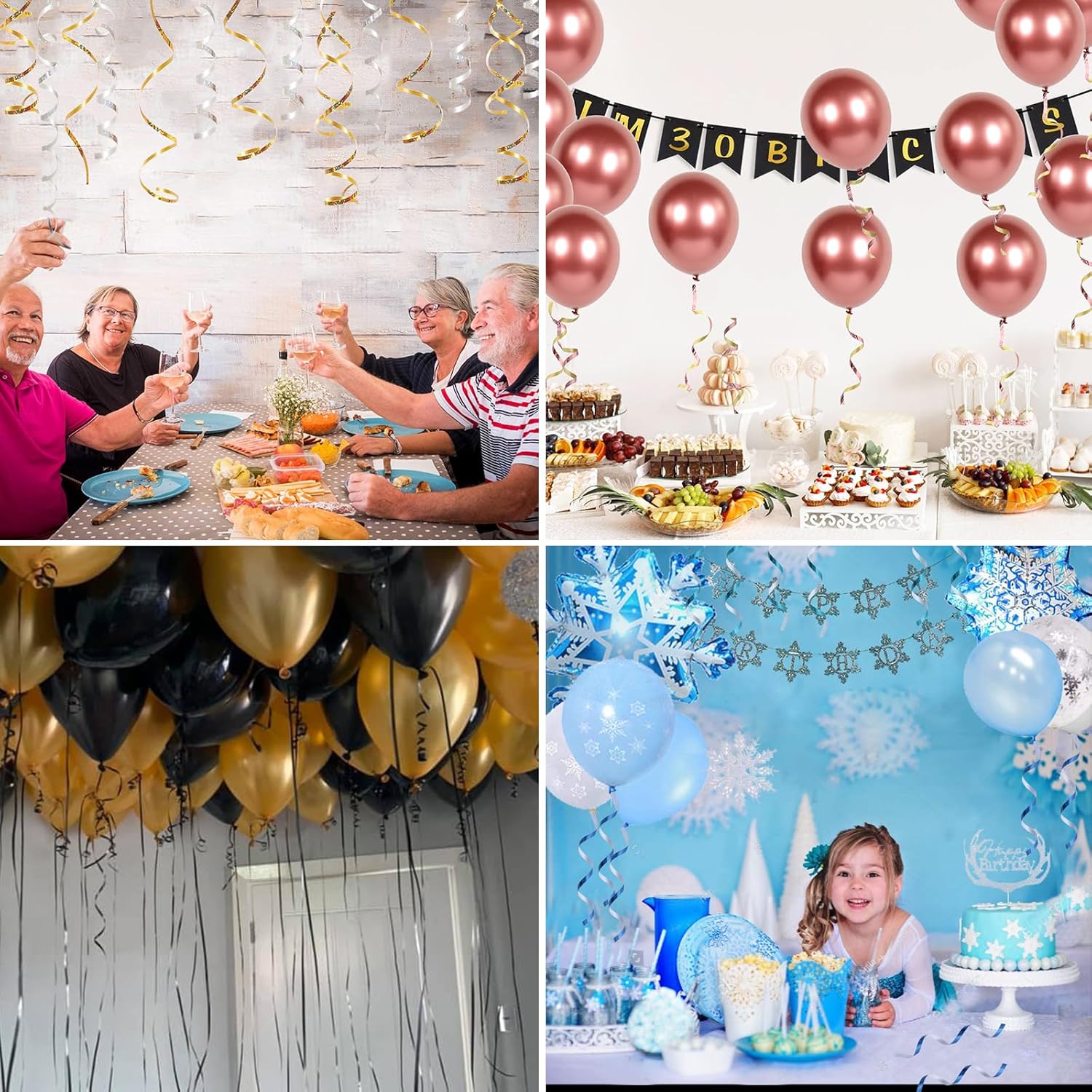 BEISHIDA 3 Pack 100 Yards Gold Silver Black Curling Crimped Glitter Ribbon Balloon String Shiny Metallic Gift Wrapping Ribbon Birthday Party Festival Art Craft Decor Florist Flowers Decoration