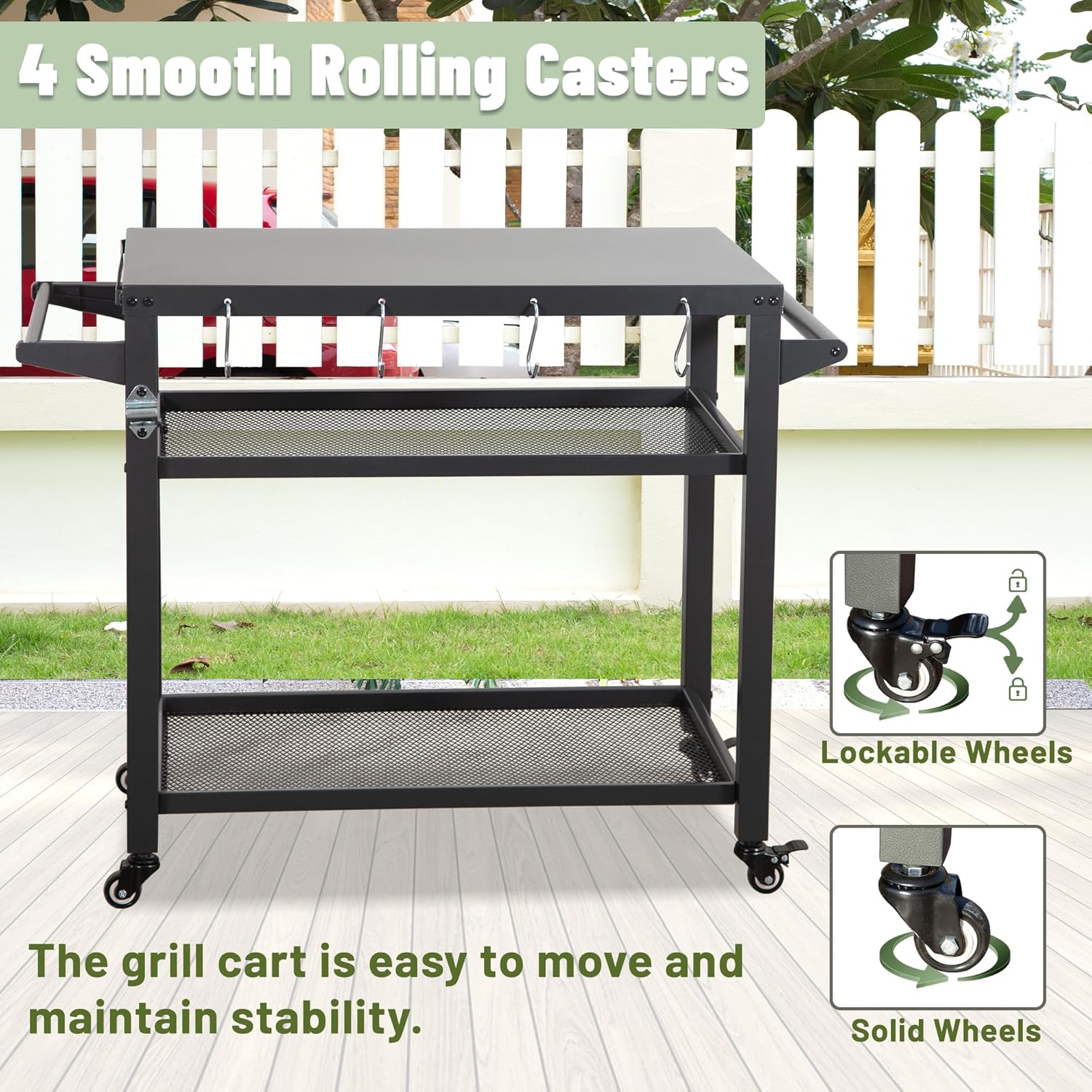 - Full & Useful Accessories- The food prep cart table includes paper towel holder, paper tissue holder, propane tank hook, bottle opener, 4 multi-functional tool hooks, etc, organizing all your favourite utensils for different cooking propose.