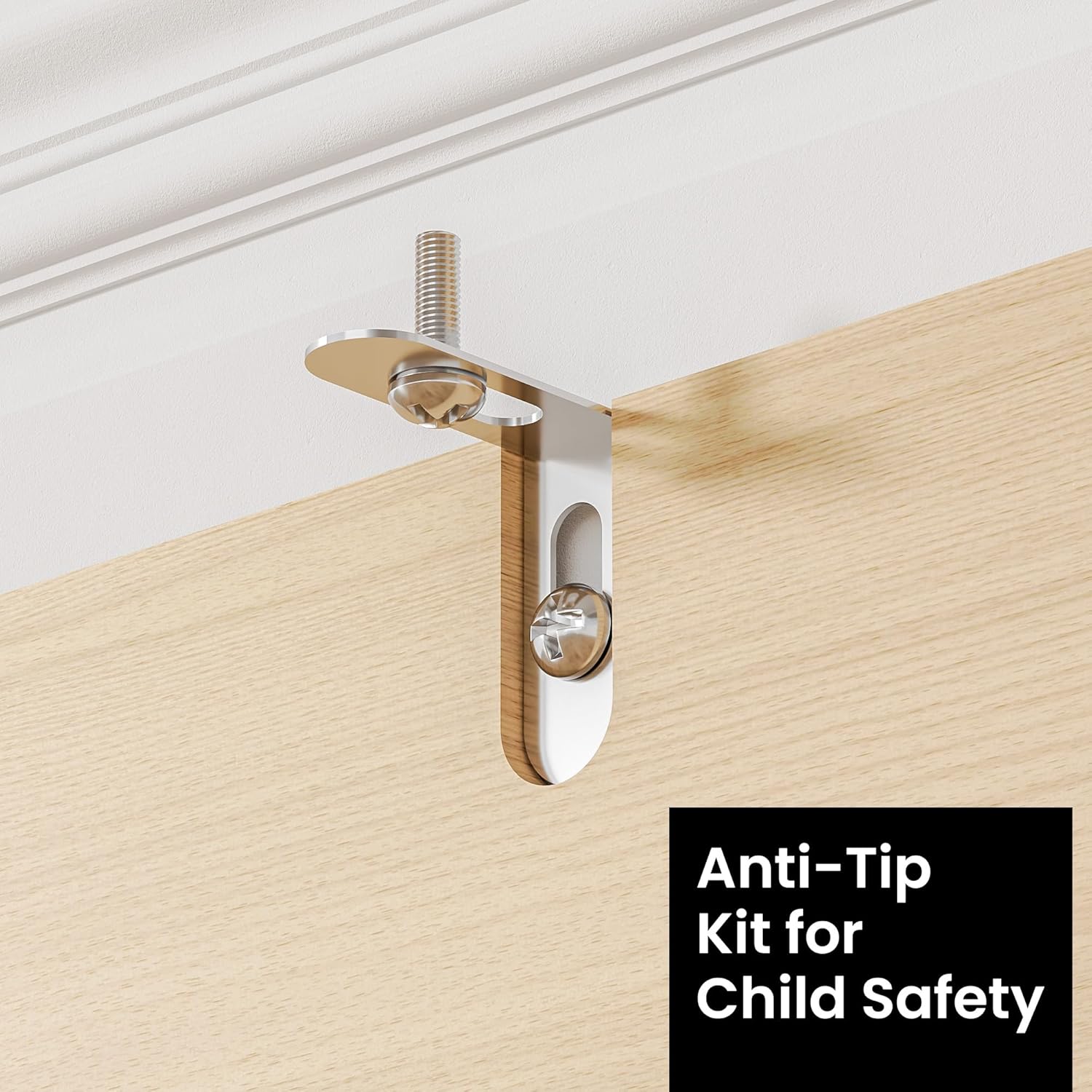 - βANTI-TIP TESTING. Included anti-tip kit can be attached to the wall to provide additional stability. Our panels are certified with CARB Phase 2 compliant: Non-toxic, low-VOC finishes make this Kitchen Pantry a safe storage space.