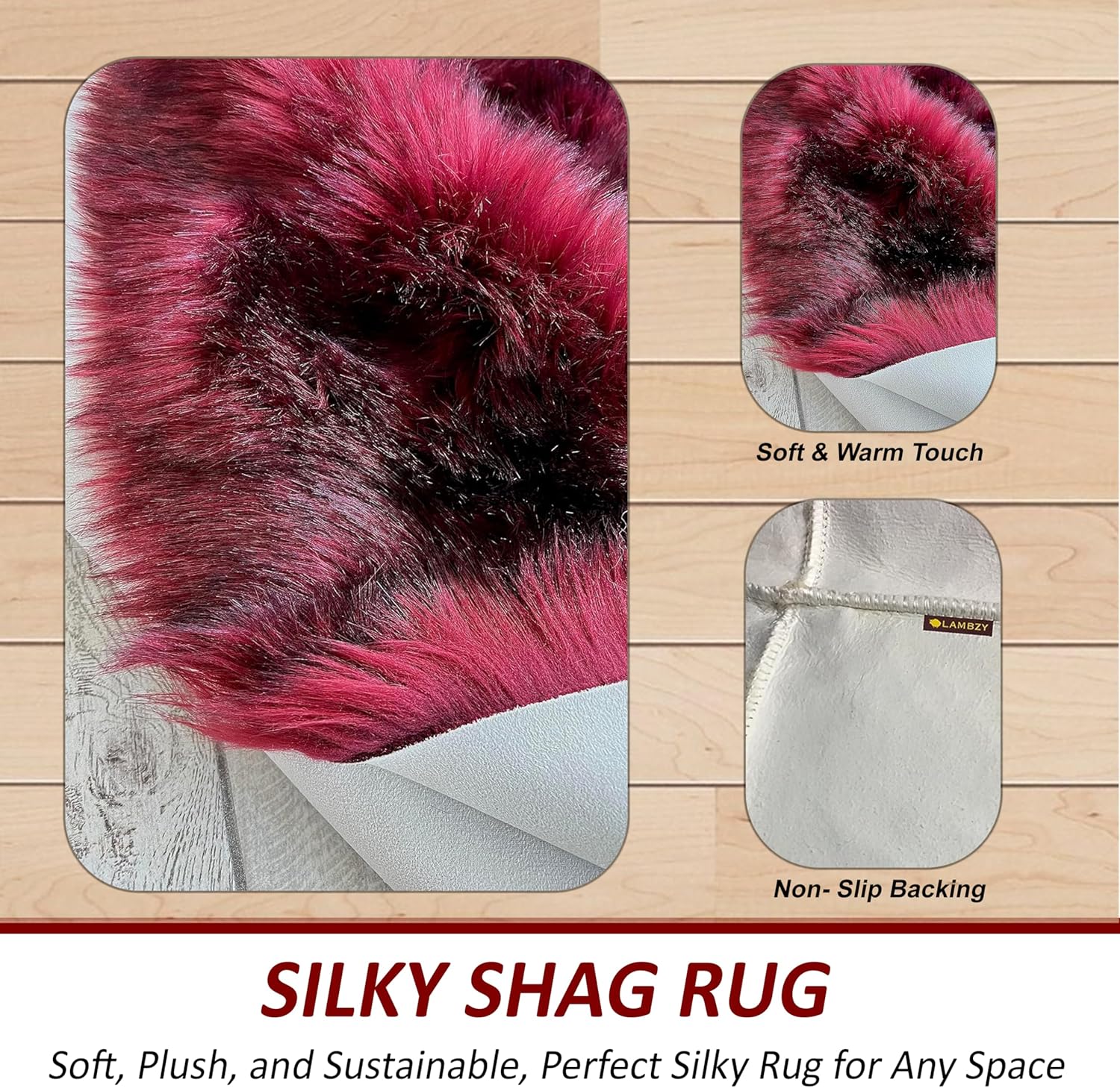 LAMBZY Faux Sheepskin Super Soft Hypoallergenic Free Shape Silky Shag Rug, Luxury Shaggy Plush Carpet for Bedrooms Living Kids Room Sofa Rugs (Burgundy, Double Side by Side 3'x4')