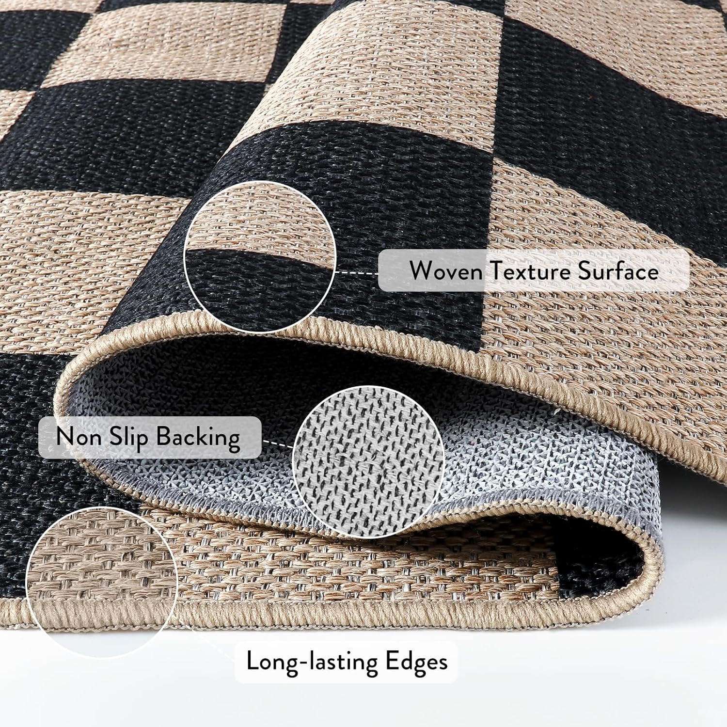 Lahome Checkered Easy Jute Carpet, 3x5 Outdoor Patio Rug Washable Rugs for Entryway Checkerboard Indoor Outdoor Living Room Classroom Carpet, Farmhouse Neutral Non Slip Black Door Mat for Bedroom