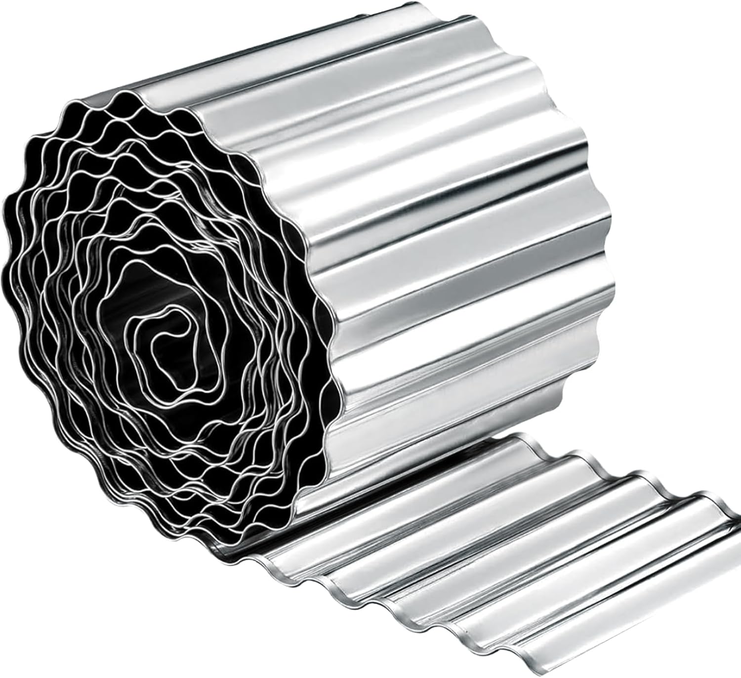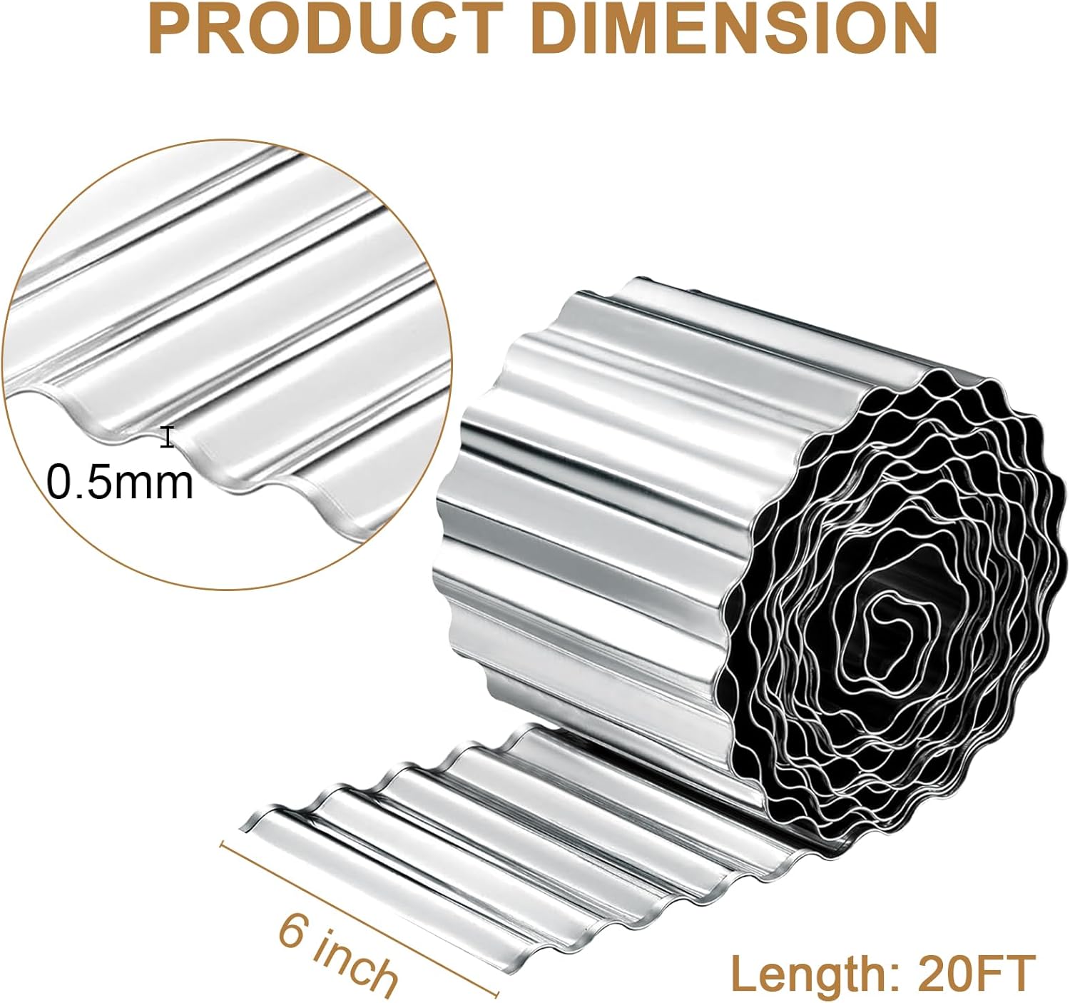 Garden Edging, Corrugated Garden Edging Border Metal Landscaping Edging Border Suitable for Flower Bed and Lawn Edging (6 Inch x 20 FT, Silver)