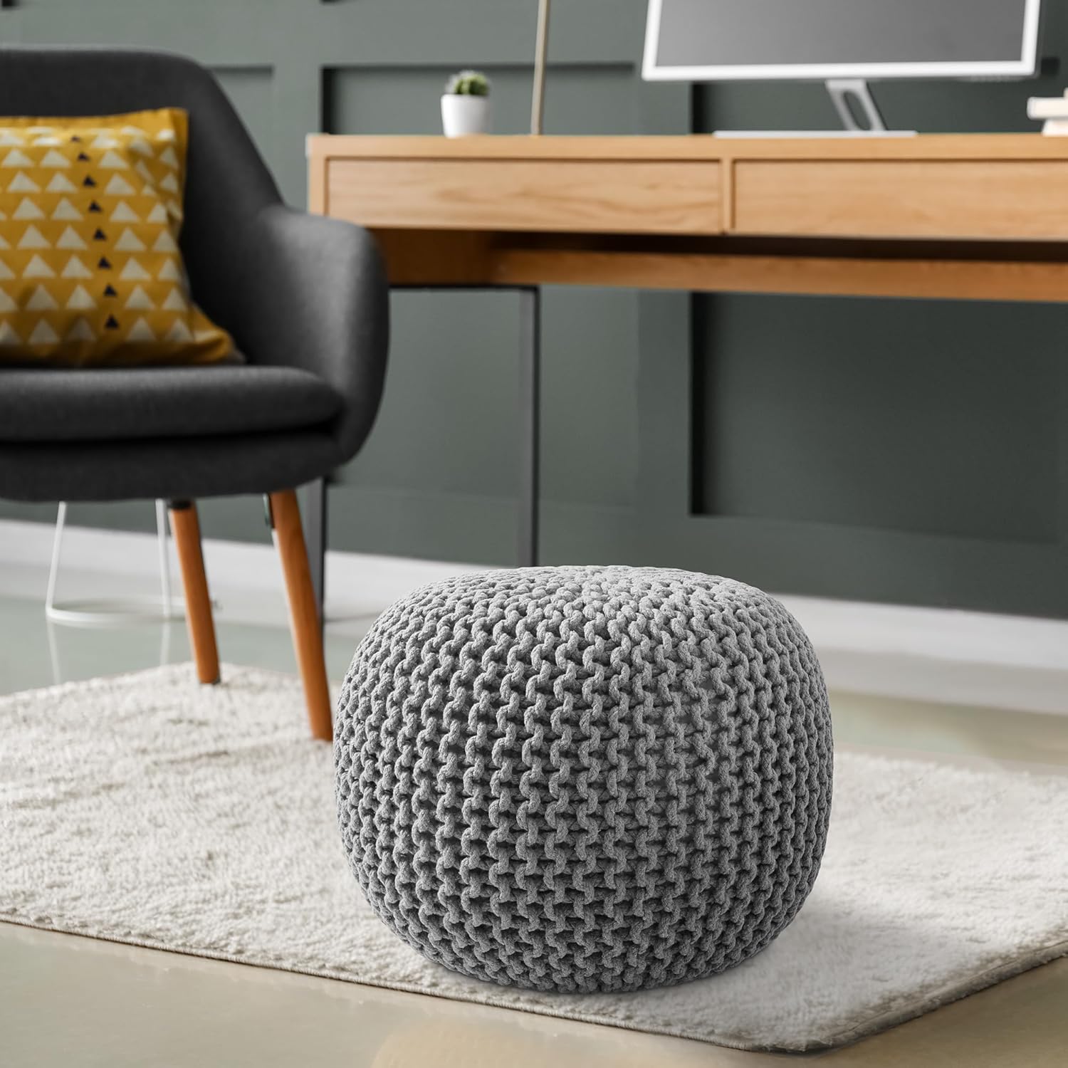 - Handcrafted style: With a sweater-like textured surface and handcrafted appeal, this cotton pouf ottoman brings a modern and bohemian vibe to your interior design. The intricate weave found on this pouf showcases skilled artisanship, adding a unique, personalized touch to your home.