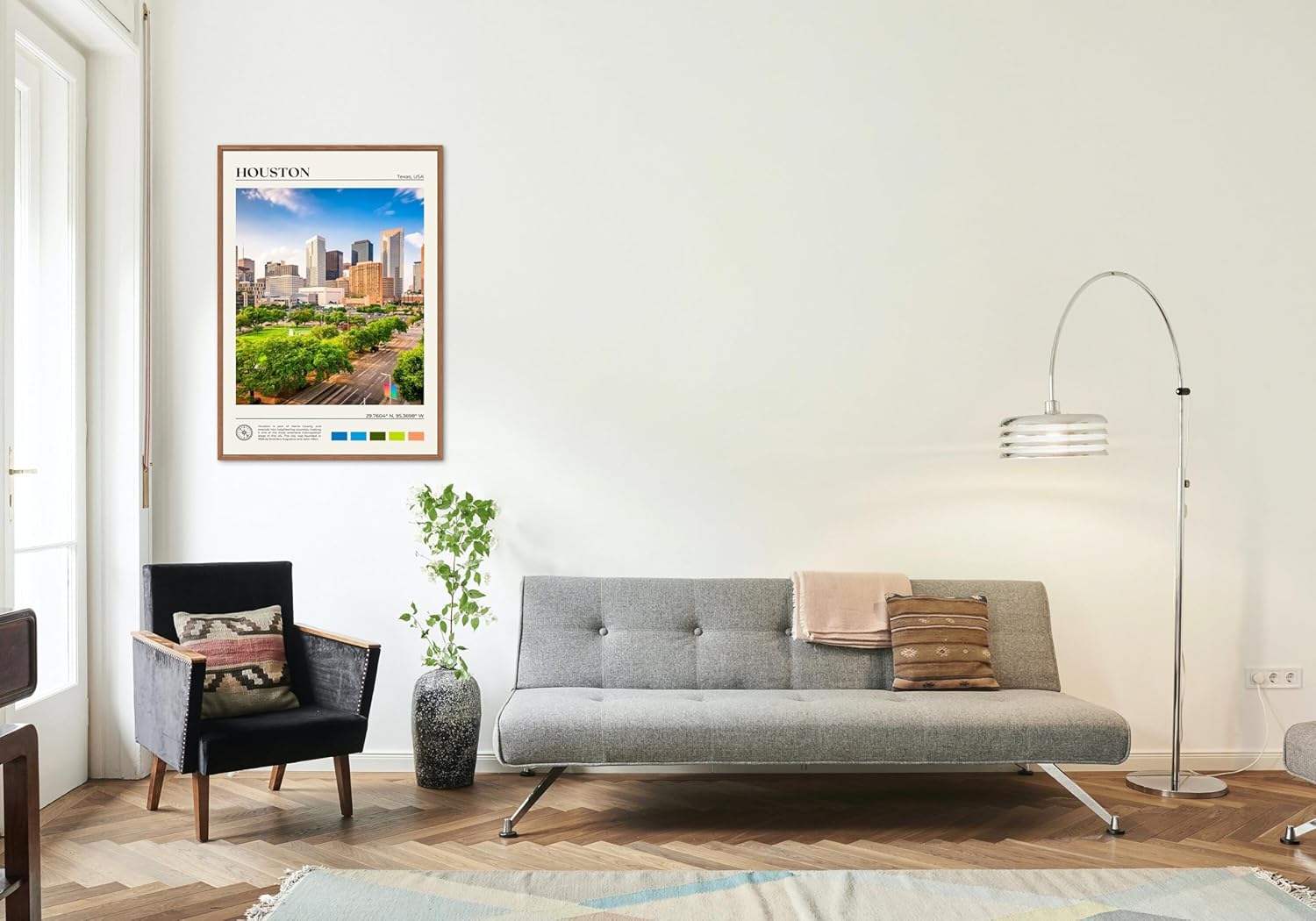 StudioUBILA Houston Wall Art Poster, Decorative Cityscape Landscape Art Prints, Home Decor Wall Art Print for Bedroom Living Room Kitchen Decorations, Unframed