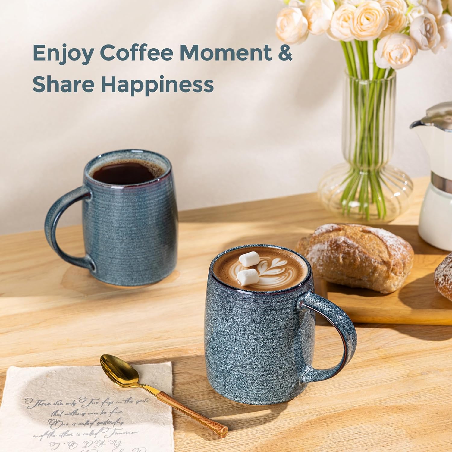 - LARGE HANDLE WITH BEAUTIFUL REACTIVE GLAZE : These coffee mugs features a large open handle that provides a comfortable and secure grip. The handle remains cool even after microwaving, and the beverages stay warm, feature a unique reactive glaze finish, each piece with handcrafted decorative is beautifully individual, adding a touch of sophistication to your table setting