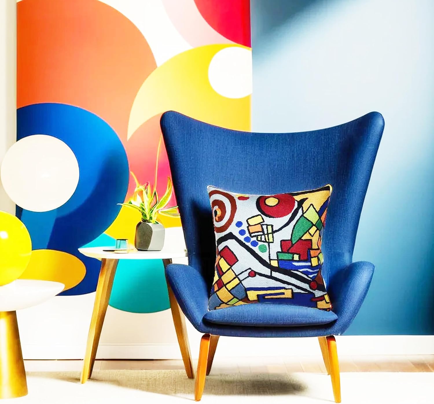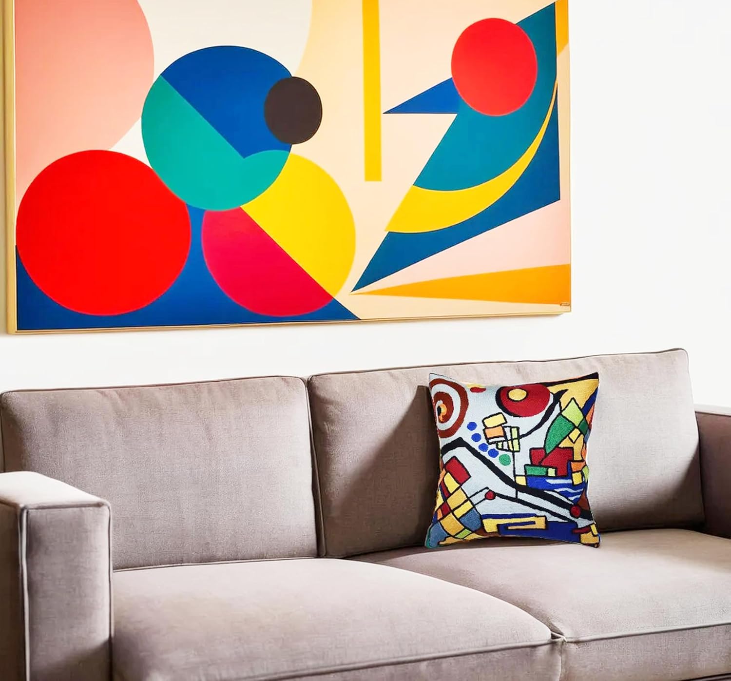 - β€ Modern Throw Pillow Cover - Hand Embroidered: Our vibrant decorative pillow covers draw inspiration from Kandinsky's artistry and are meticulously hand-embroidered using soft wool. Our skilled artisans devote painstaking attention to detail, creating an extraordinary abstract pillow that enhances your home decor. An up-close look at this contemporary accent pillow reveals the exquisite craftsmanship of fine chain-stitch hand embroidery.