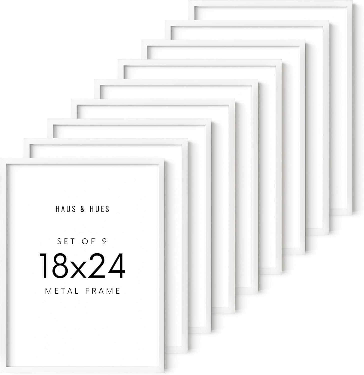 HAUS AND HUES 18x24 White Metal Picture Frames - Features Premium Aluminum, Vertical & Horizontal Hang, Shatterproof Plexiglass - Ideal for Home, Room, Office (18x24 in, White, Set of 9)