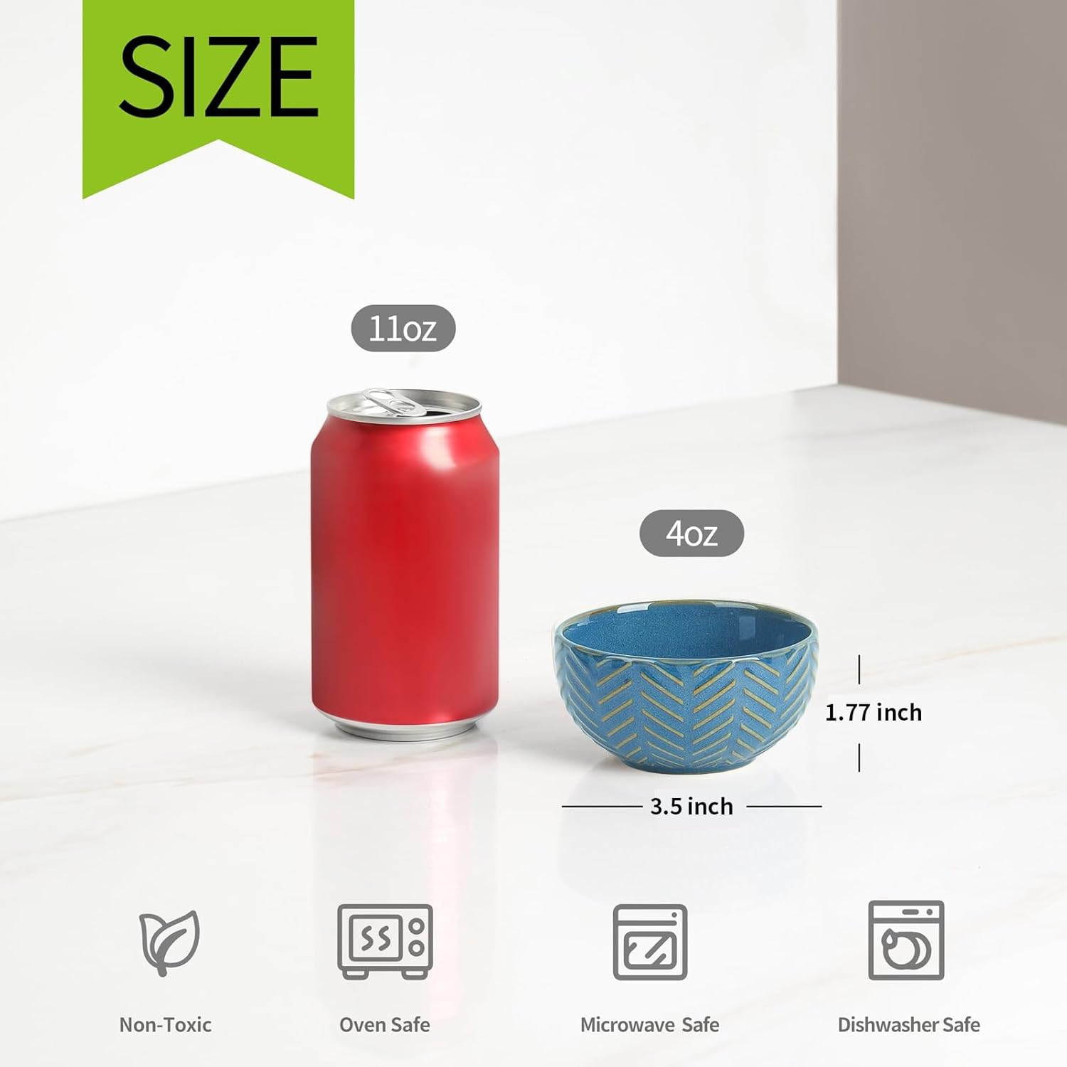 Sureasy Mini Ceramic Dipping Bowls – 4 oz, 3.5 Inch Small Bowls for Sauces & Side Dishes, Microwave & Dishwasher Safe, Set of 4, Blue