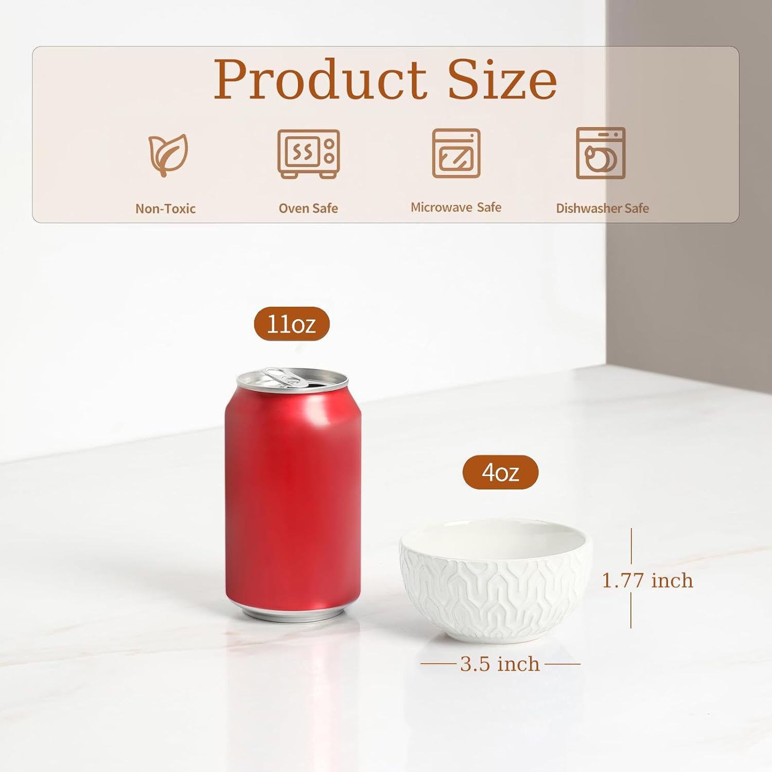 Sureasy Mini Ceramic Dipping Bowls – 4 oz, 3.5 Inch Small Bowls for Sauces & Side Dishes, Microwave & Dishwasher Safe, Set of 4, White