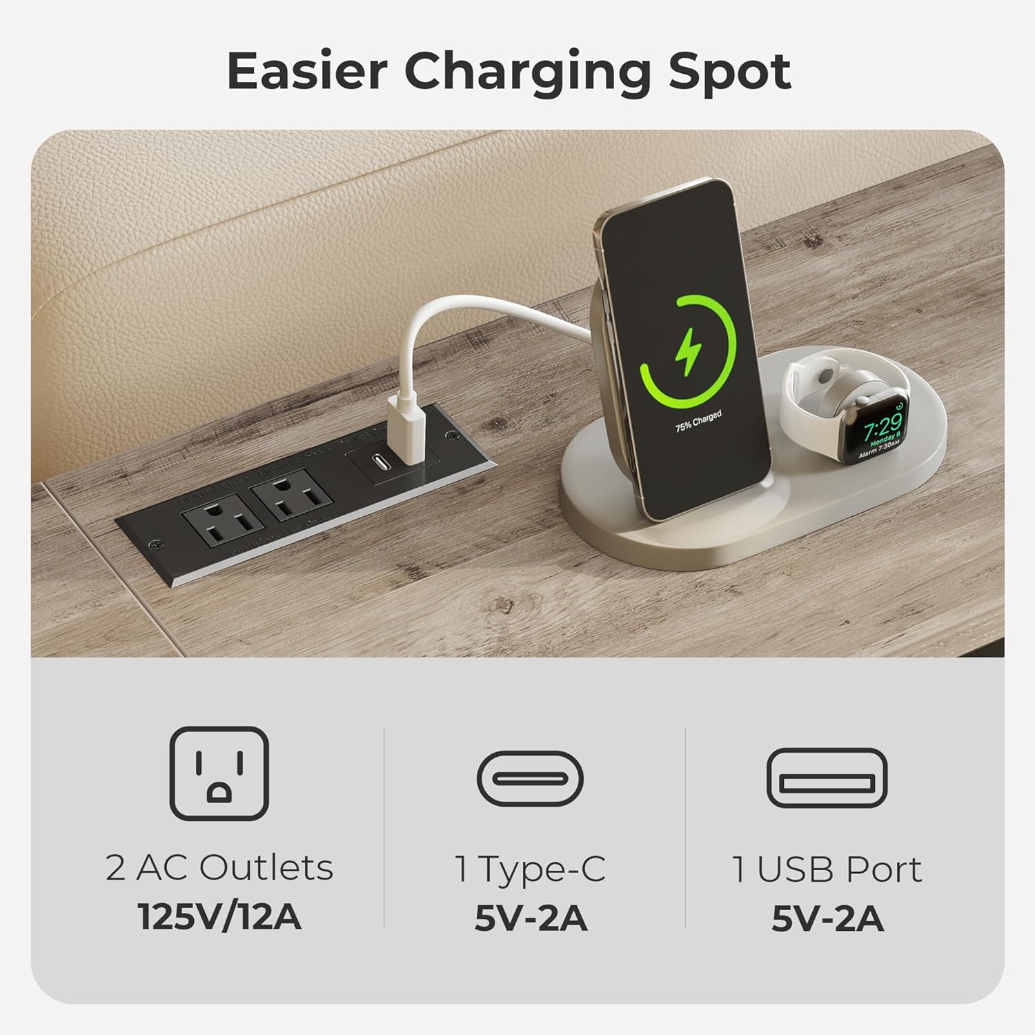 - 【Multiple Sofa back Charging Options】No more diving behind the sofa for an outlet! This sofa table features 2 AC outlets, 1 USB, and 1 USB-C port, perfect for charging your phone, lamp, speaker, or laptop right where you need it, whether behind your couch, in the hallway, or by the entry