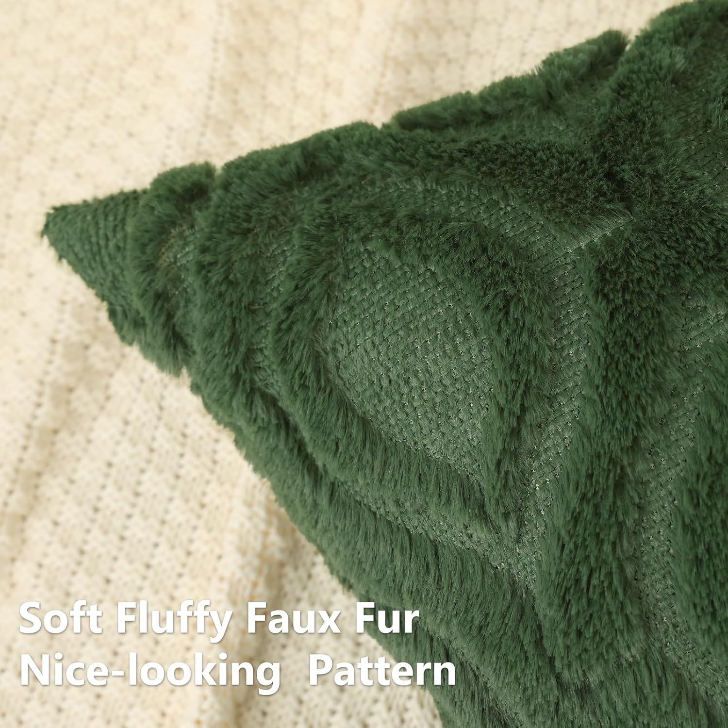 decorUhome Throw Pillow Covers 16x16 Inch Set of 2, Soft Plush Decorative Faux Fur Forest Elf Solid Couch Pillow Covers, Accent Farmhouse Neutral Square Euro Pillow Cases for Sofa Bed Living Room